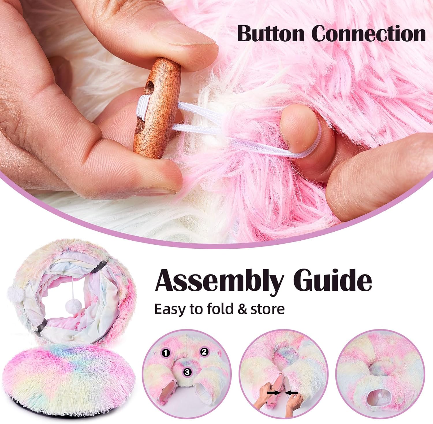 - 【Assembled into Different Shapes】Odoland cat donut tunnel is made with high-quality soft plush material. You can shape the tunnel in a straight, S-shaped or even circular form. The fur cat soft sofa can be placed inside the cat tunnel or used separately.