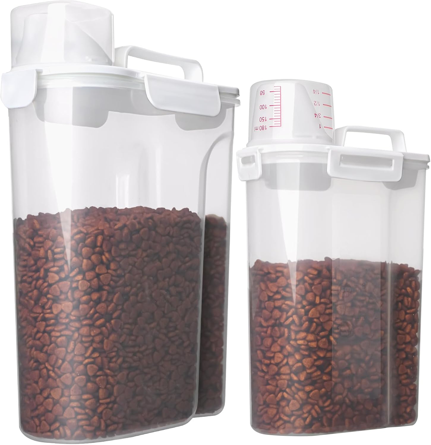Dog Food Storage Container, 5-7 Lbs Airtight Pet Food Container, Cat food Container Dispenser with Portable Handle, Pouring Spout and Measuring Cup for Dogs Cats 2Pack White/6Qt