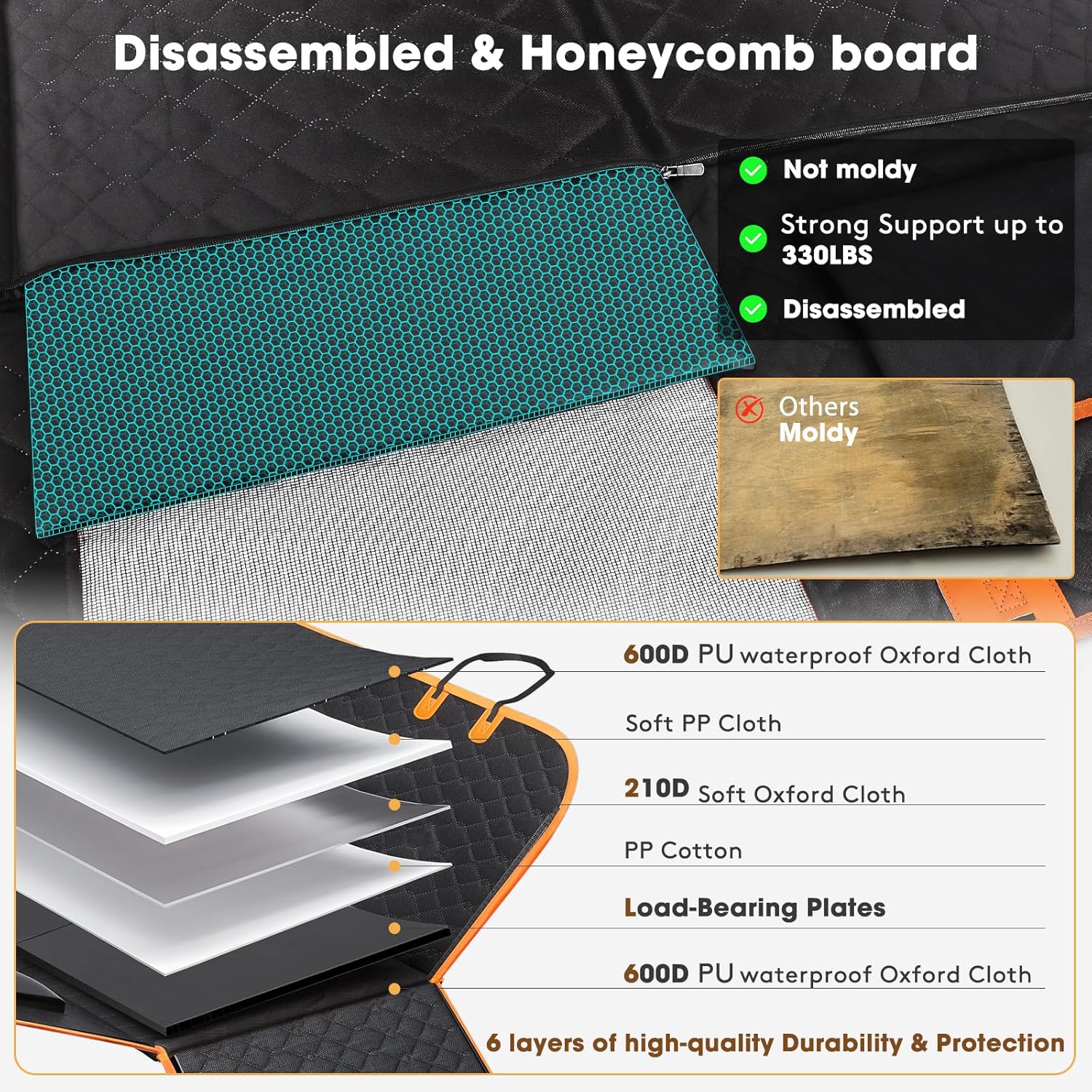 - Special Feature : Hard bottom, Waterproof, 6-layer durability, Supports up to 350lbs, Prevents dogs from falling, Reduces pet anxiety, Multifunctional (serves as sleeping pad or cargo liner) Hard bottom, Waterproof, 6-layer durability, Supports up to 350lbs, Prevents dogs from falling, Reduces pet anxiety, Multifunctional (serves as sleeping pad or cargo liner)