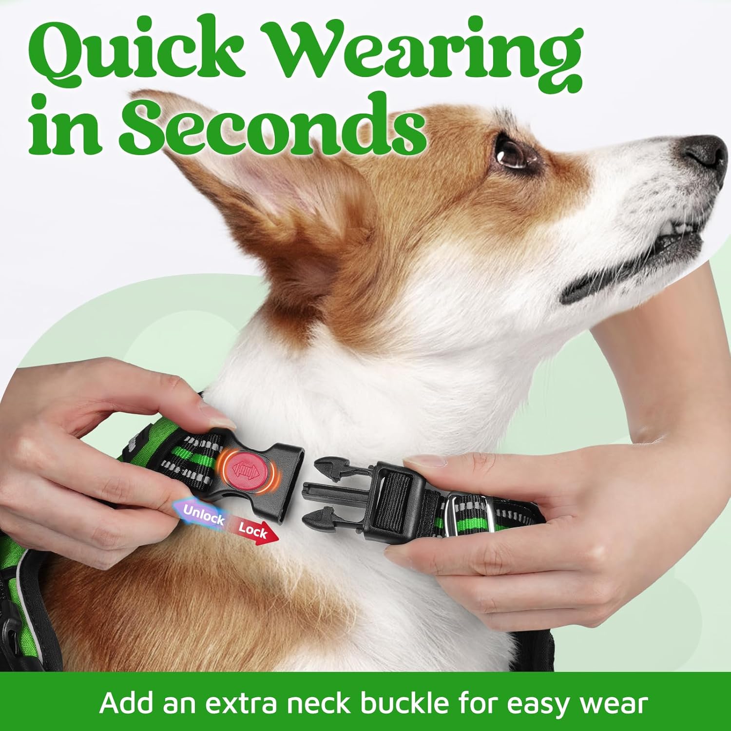 rabbitgoo Dog Harness Medium Sized, No Pull Dog Vest with 3 Buckles, Adjustable Soft Padded Pet Harness with Easy Control Handle and Reflective Strips, Green, M