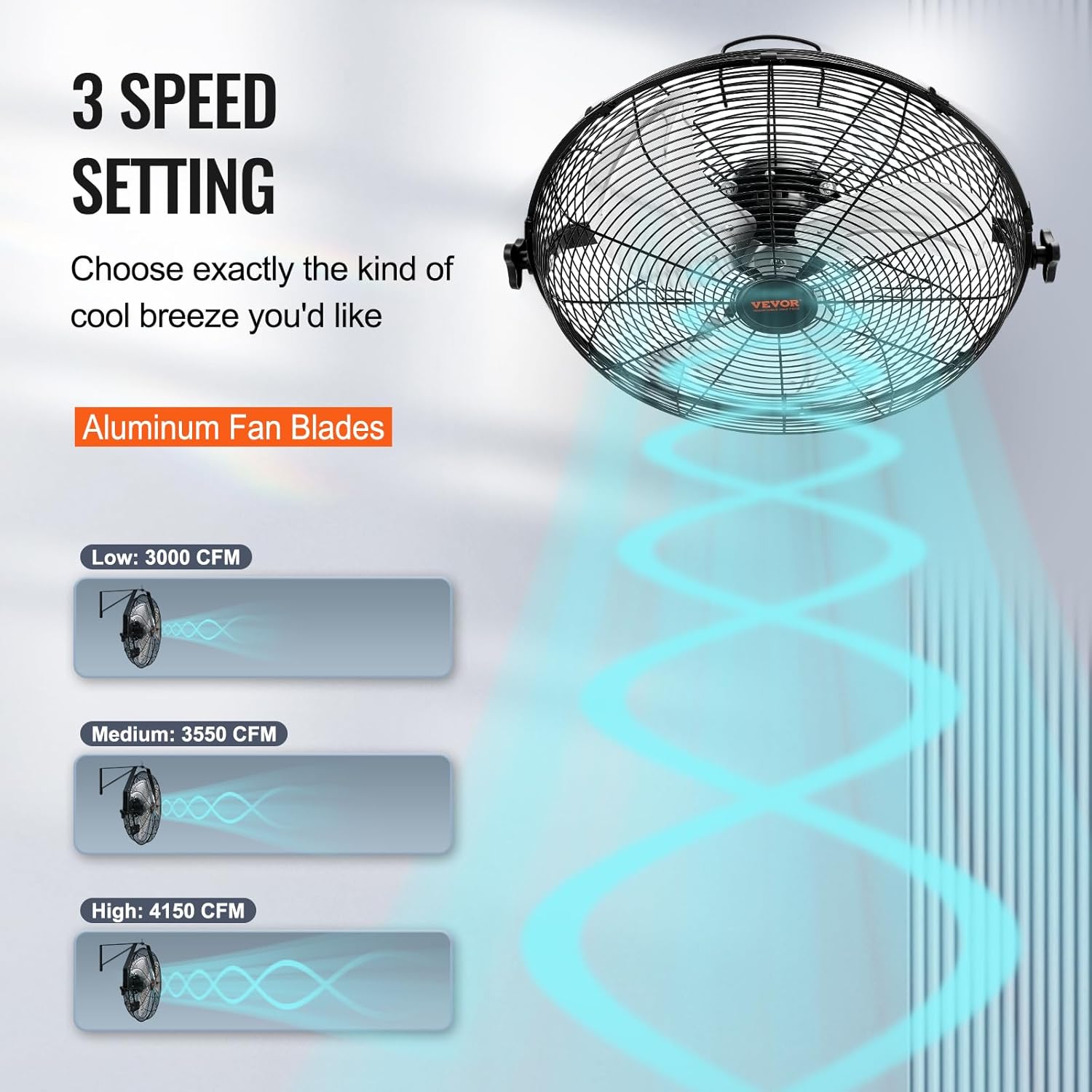 - Adjustable Wall Mounted Fan: Get ready to reach every corner of the room! The 18'' weatherproof wall fan can be tilted vertically for optimum airflow. Get ready for a complete heavy-duty metal construction with aluminum blades for easy disassembly and cleaning.