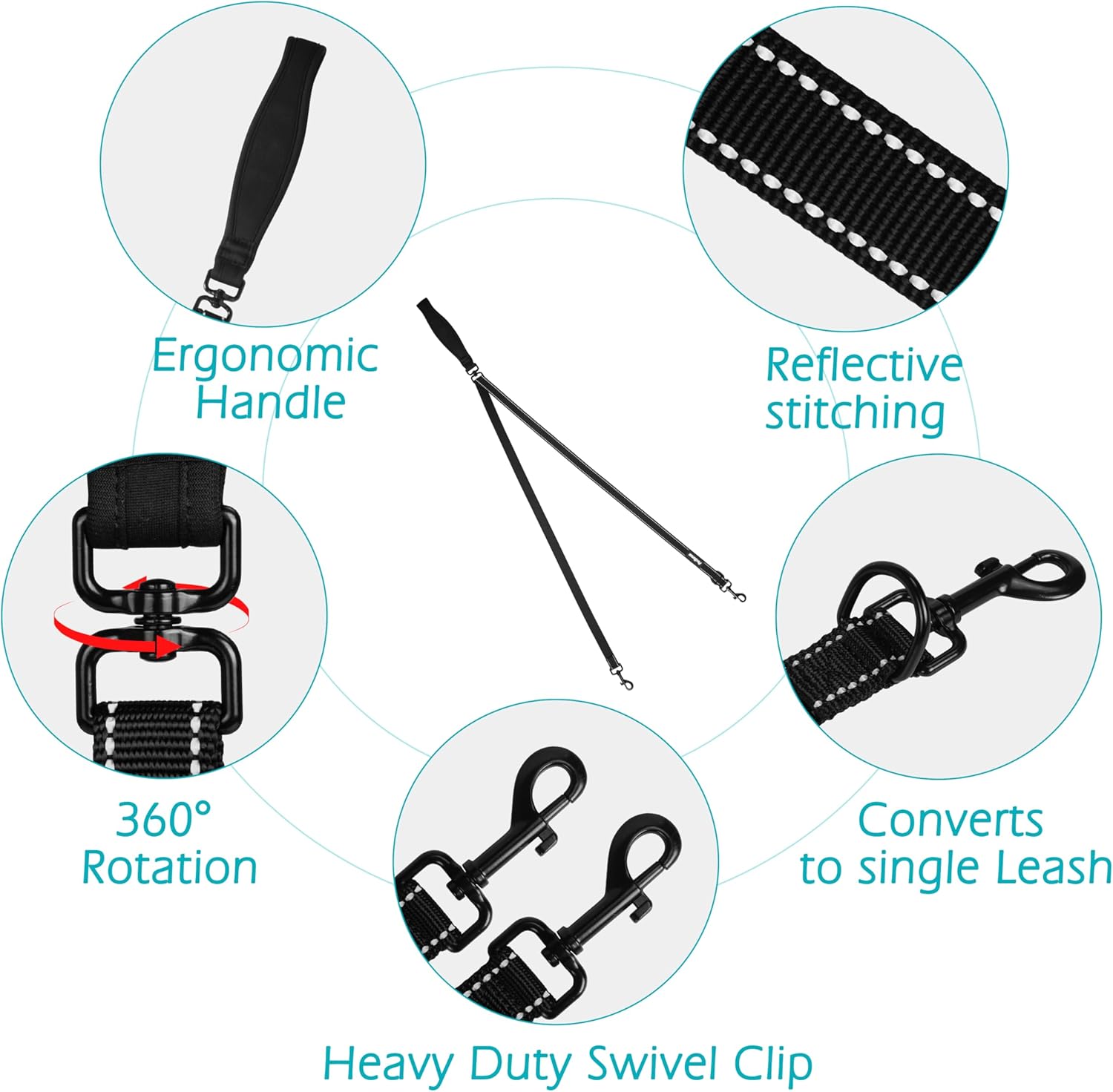 - No Tangle Dog Leashes: The 360 degrees swivel clip allows the handle to move with the dog, making it easier to control the dog's pace and direction, and helps prevent the leash from getting tangled up as the dog moves