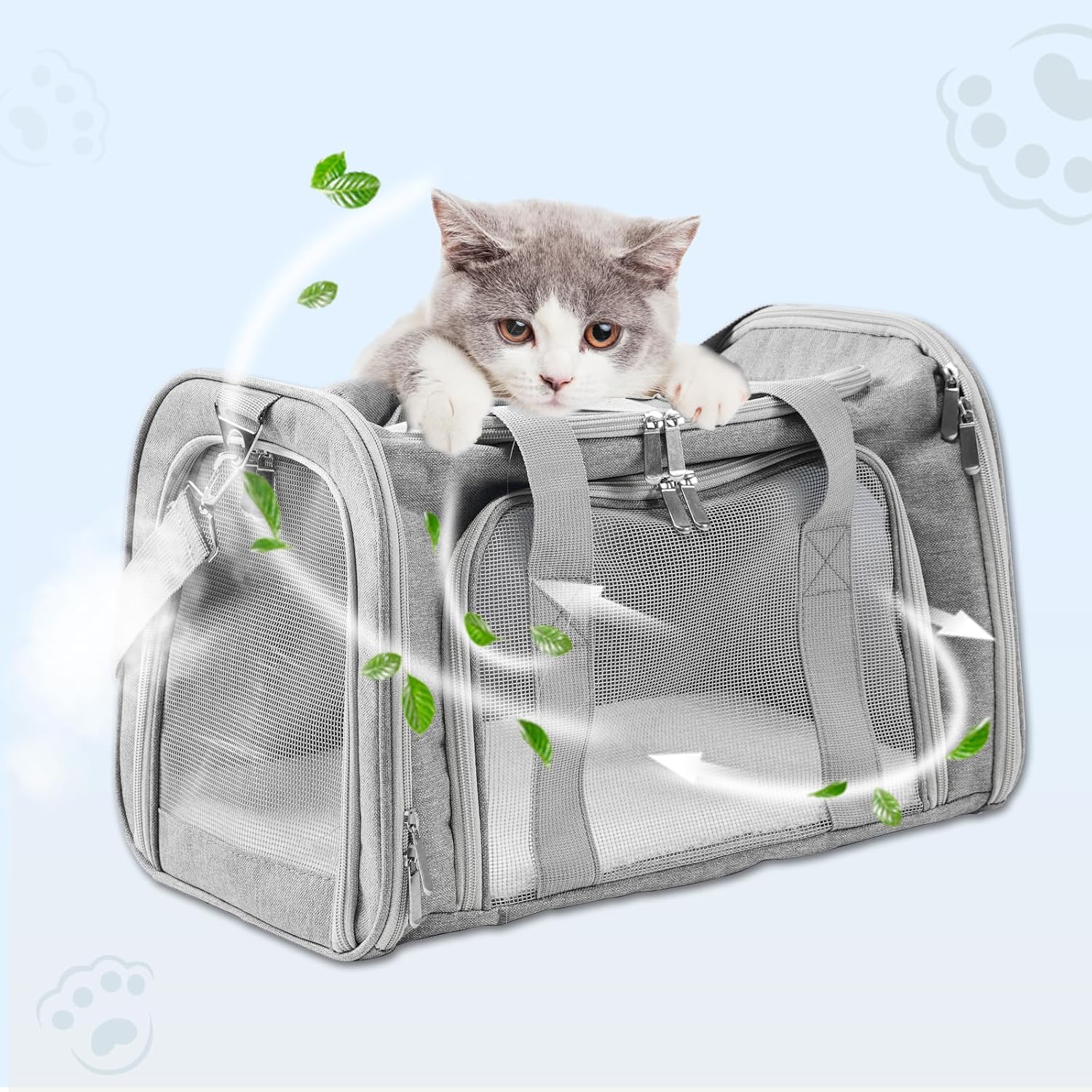 Roaringkitty Travel in Style: Portable Pet Carrier for Small Pets up to 15 Lbs- Airline Approved, Collapsible & Comfortable cat/Puppy Soft Sided Bag (Grey)
