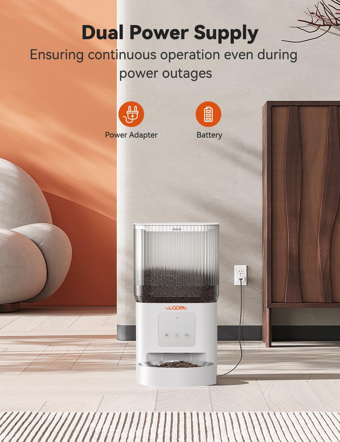 - Smart APP Control: Remotely set times to feed your pet automatically, with WOPET wifi cat feeder you can set 1-10 meals per day and up to 8 portions of dry food per meal depending on your pet's needs. Allowing you to program and monitor your pet's meals anywhere anytime through the WOPET Life App for iOS and Android phones. Compatible with 2.4G.