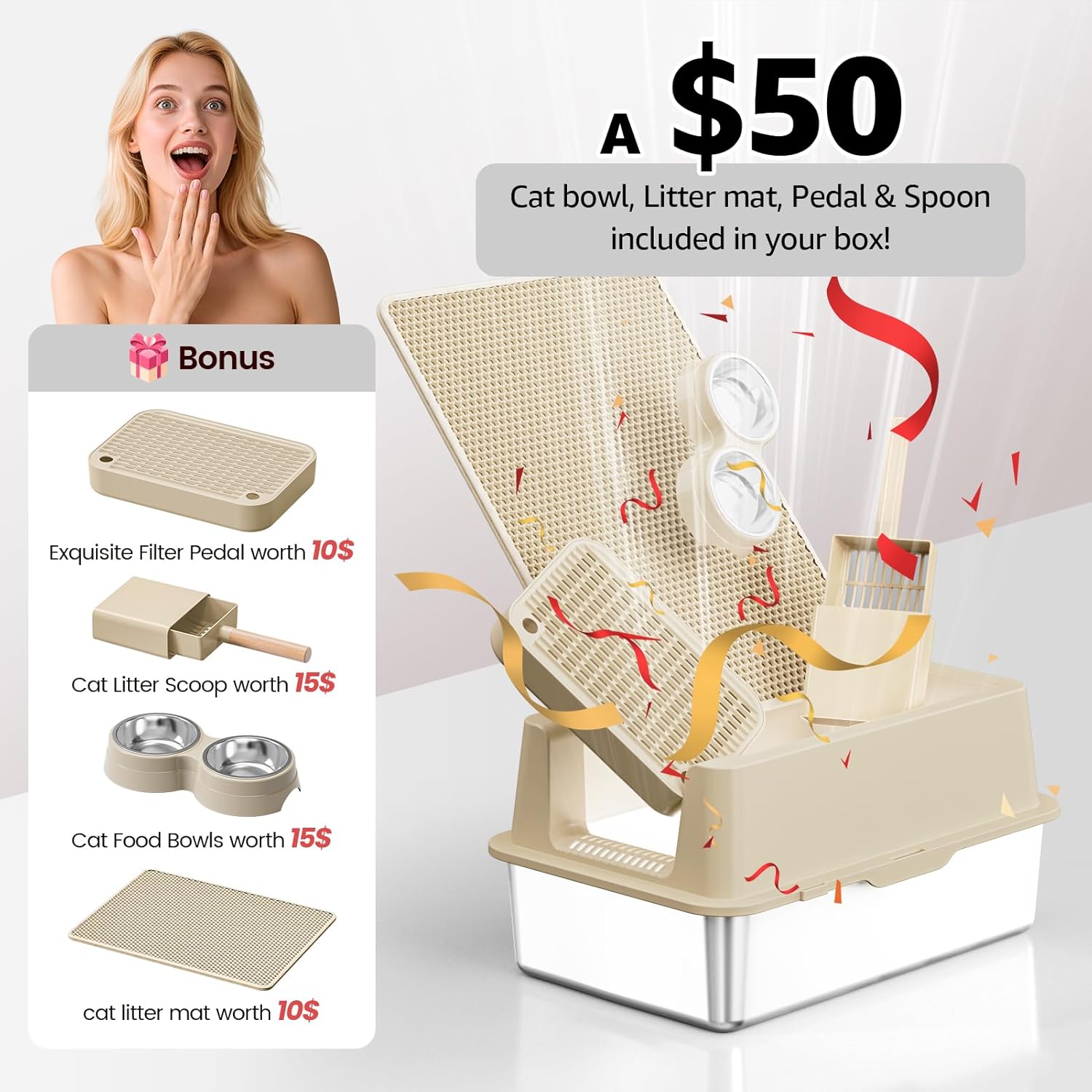 - 【LARGER, TALLER UNIQUE PEDAL】Our metal litter box boasts a unique filter pedal mechanism that adeptly captures any stray litter your cat might track out. But that's not all! The elevated footboard ensures effortless entry and exit for cats, including seniors, kittens, and those with shorter legs. It's an invitation for your cat to embrace their natural instincts with ease.