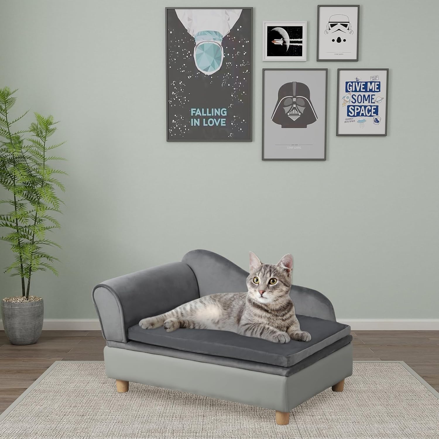 - PET SOFA SIZE: 30" L x 18" W x 16" H. Cushion size: 24.6” L*16.7” W. Storage: 25.6" L x 15" W x 3.5" H. Recommend for schnauzer, chihuahua, shih tzu, pomeranian, maltese, Pekingese, Bichon Frise, Boston Terrier, British Shorthair, American Shorthair, Siamese and so on