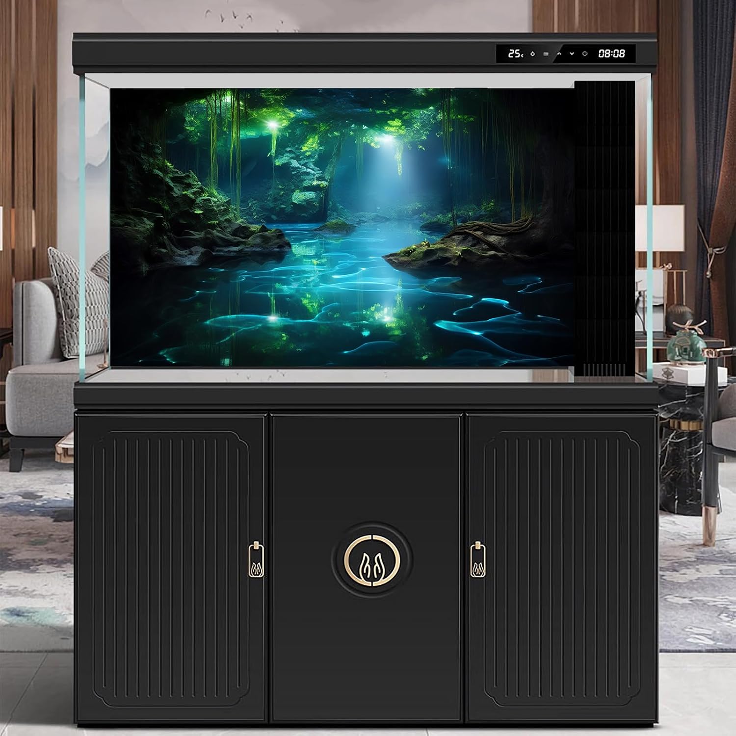 - Aquarium Backdrop Material: The Terrarium Background is made from vinyl fabric, which is lightweight, soft and delicate. The background retains its vibrant colours under aquarium lighting, ensuring long-lasting beauty and durability.