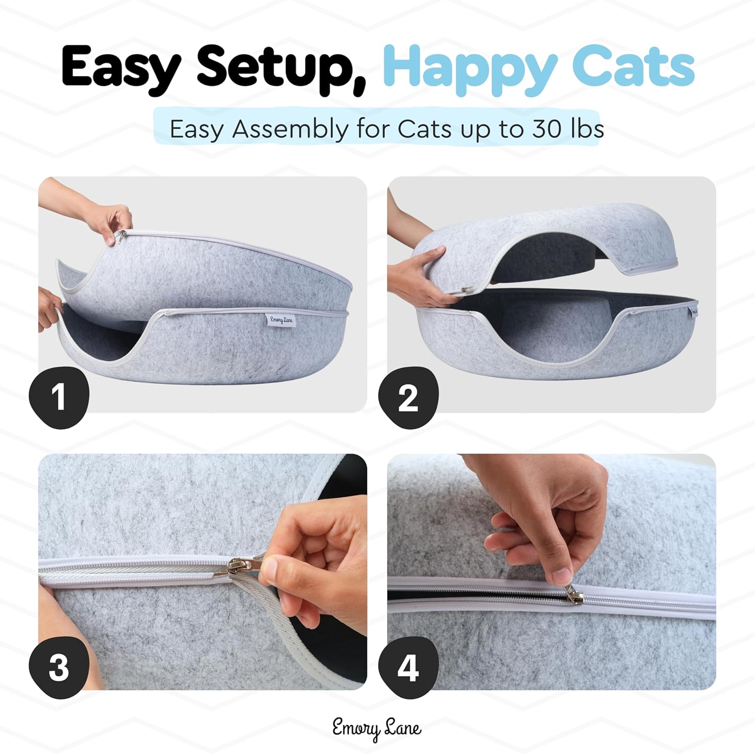Emory Lane - Premium Cat Cave for Small Pets, Multifunctional Donut Tunnel Bed for Indoor Pets, Round Felt Pet Cave with Premium Zipper, for Pets up to 40 Lbs (24x24x11 Inch) (Light Gray)