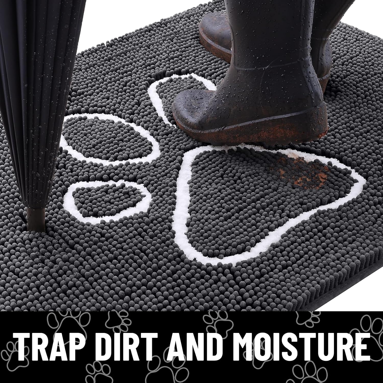 Smiry Dog Door Mat for Muddy Paws, Absorbent Dirt Trapper Non Slip Quick Dry Washable Chenille Mat for Mud Dogs, Entry Rug for Indoor and Outdoor (71x46 Inches, Dark Grey and White)