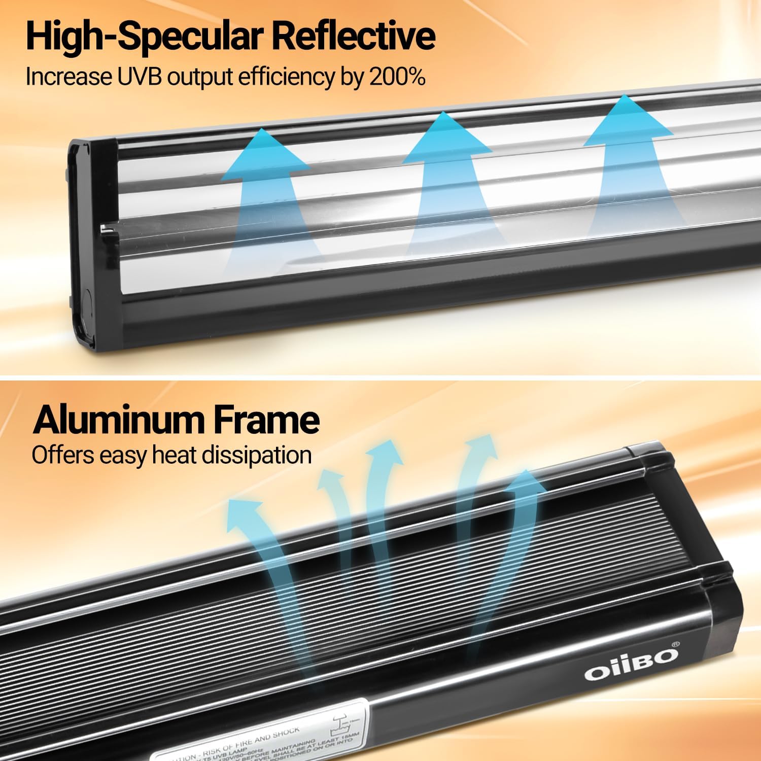 - 【More UVA & UVB Output】The bearded dragon light fixture uses a high-specular reflective sheet, increasing UVB and UVA output from the lamp tube by 200%, helping reptiles better absorb calcium and ensuring healthy growth. Good heat dissipation of the aluminum shell, enhancing the light fixture's lifespan.