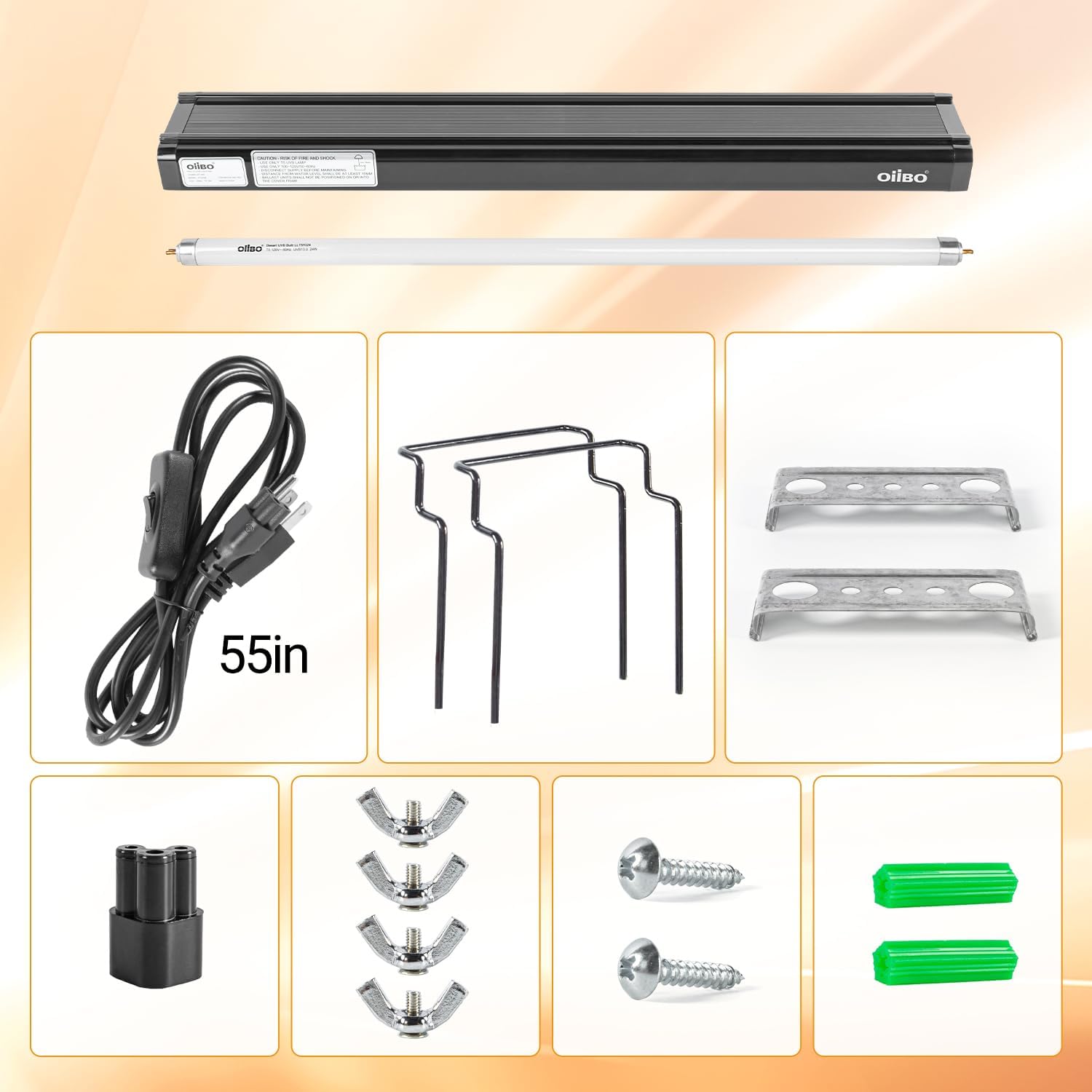 Oiibo T5 HO Reptile Light Fixture UVB Lighting Combo Kit, Reptiles Terrarium Lamp Hood Light Fixture Include UVB 10.0 Desert Reptile Light for Bearded Dragon Gecko Lizard (24W)