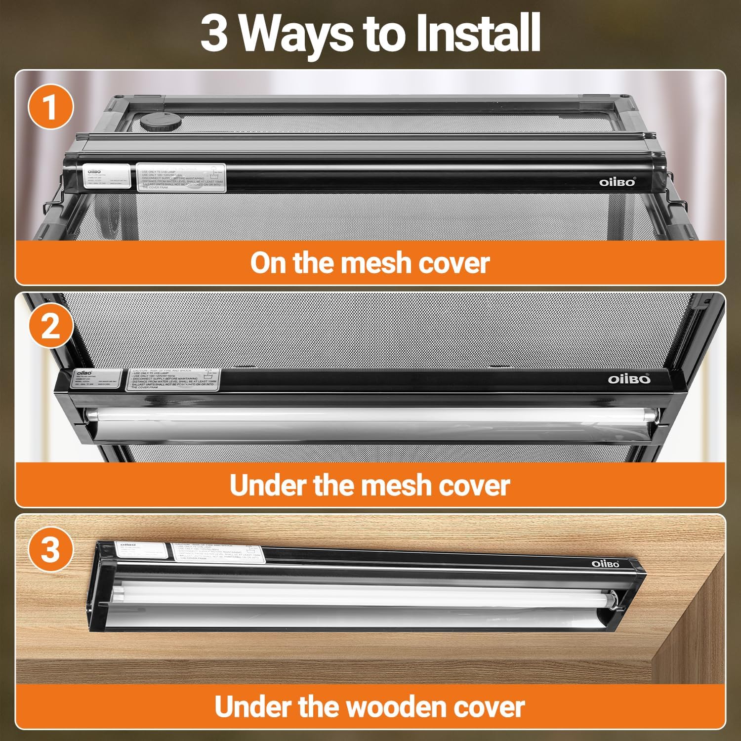 - 【Easy Installation & Sturdy】This T5 lighting fixture includes all mounting accessories, allowing for secure mounting on the top and inside of mesh-screened glass enclosures, or within wooden habitats, ensuring optimal UVB light distribution throughout the reptile enclosure.