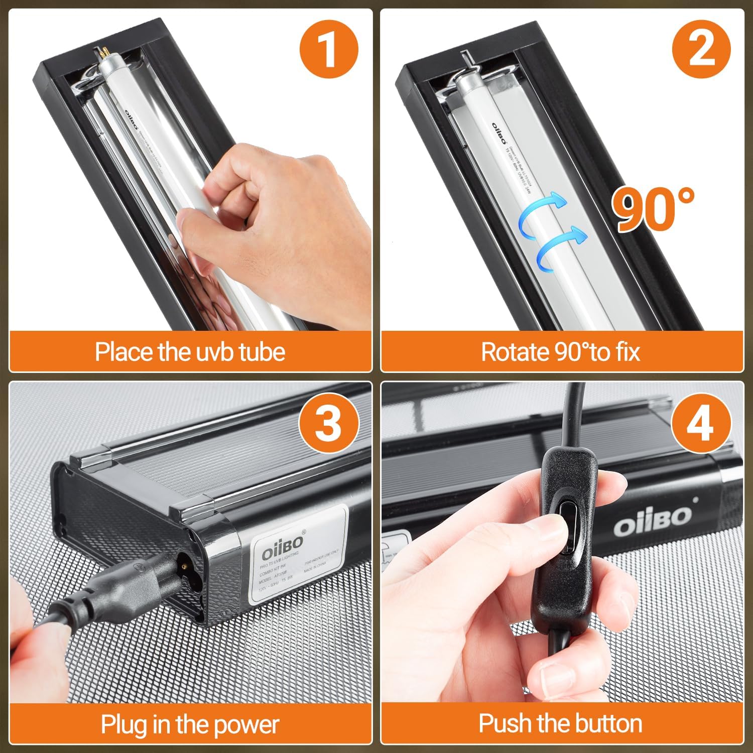 - 【Reptile Health】OiiBO 24-Watt T5 HO Terrarium Hood for Reptiles with 10.0 UVB UVA Lamp provides essential UVB and UVA rays that simulate the UVB spectrum of sunlight, aiding reptiles in synthesizing vitamin D3, promoting healthy bone development, enhancing immunity, and preventing diseases. UVA rays stimulate reptiles' appetite and help meet their daily needs.