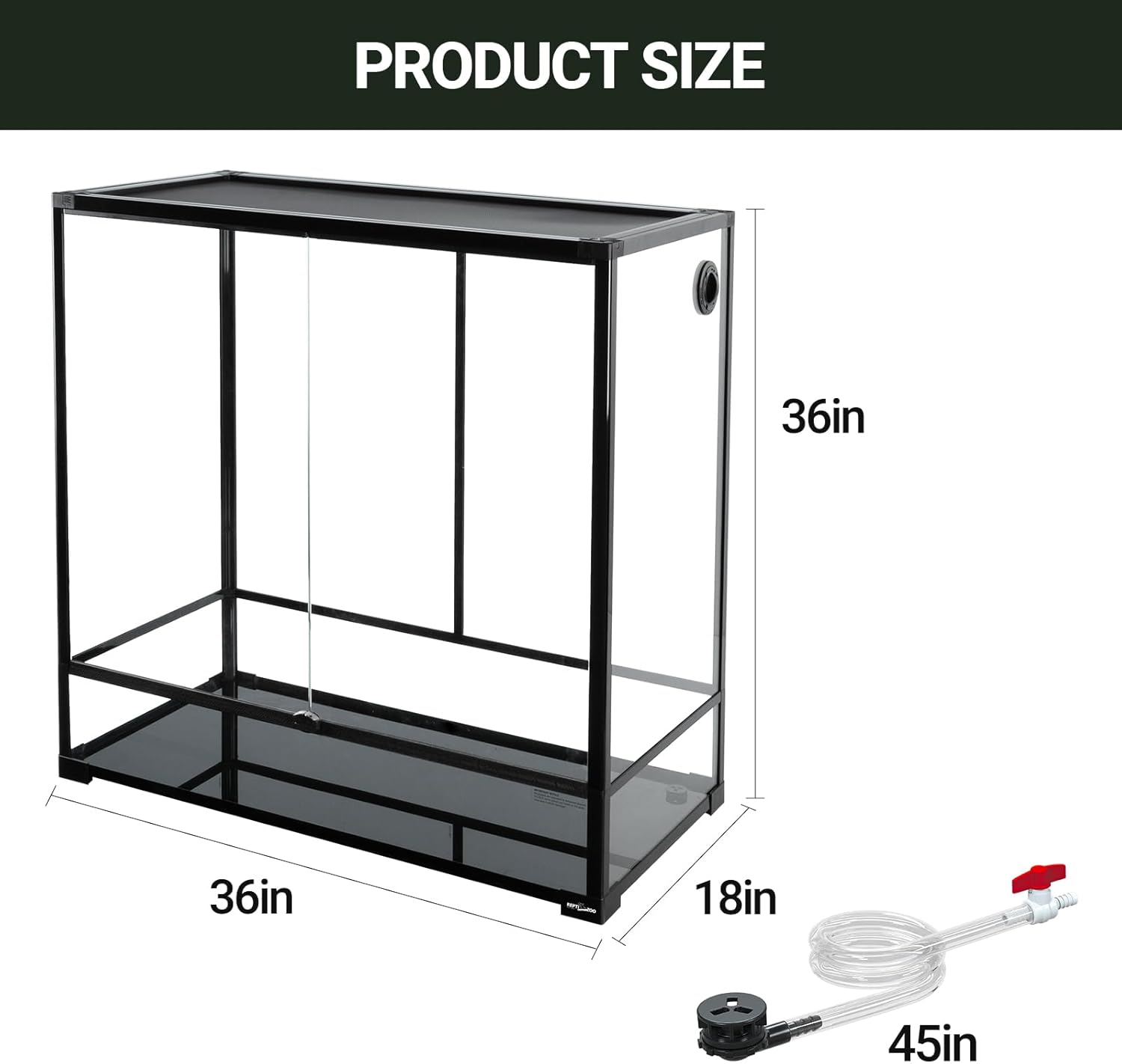 - 【Extra Tall Large】: 36 (length) x 18 (width) x 36 (height) inches. Made of sturdy tempered glass and mesh, it has excellent durability. The fully transparent glass design clearly displays the activity status of reptiles, arboreal animals and aquatic animals, creating a comfortable and spacious habitat.