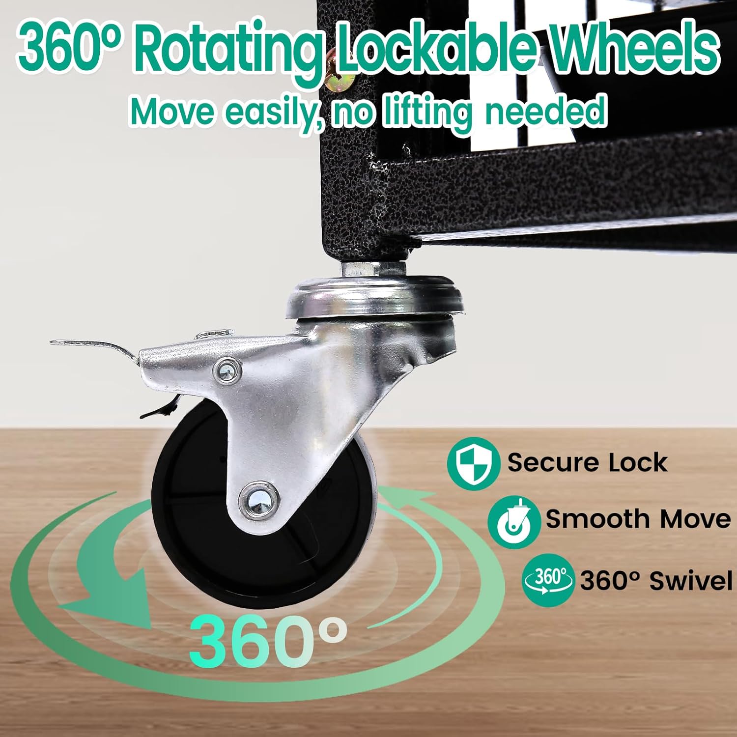 - Move with Ease: Four 360° swivel heavy-duty wheels make it easy to move the heavy duty dog kennel for cleaning, and all four wheels can be locked to keep it securely in place when needed