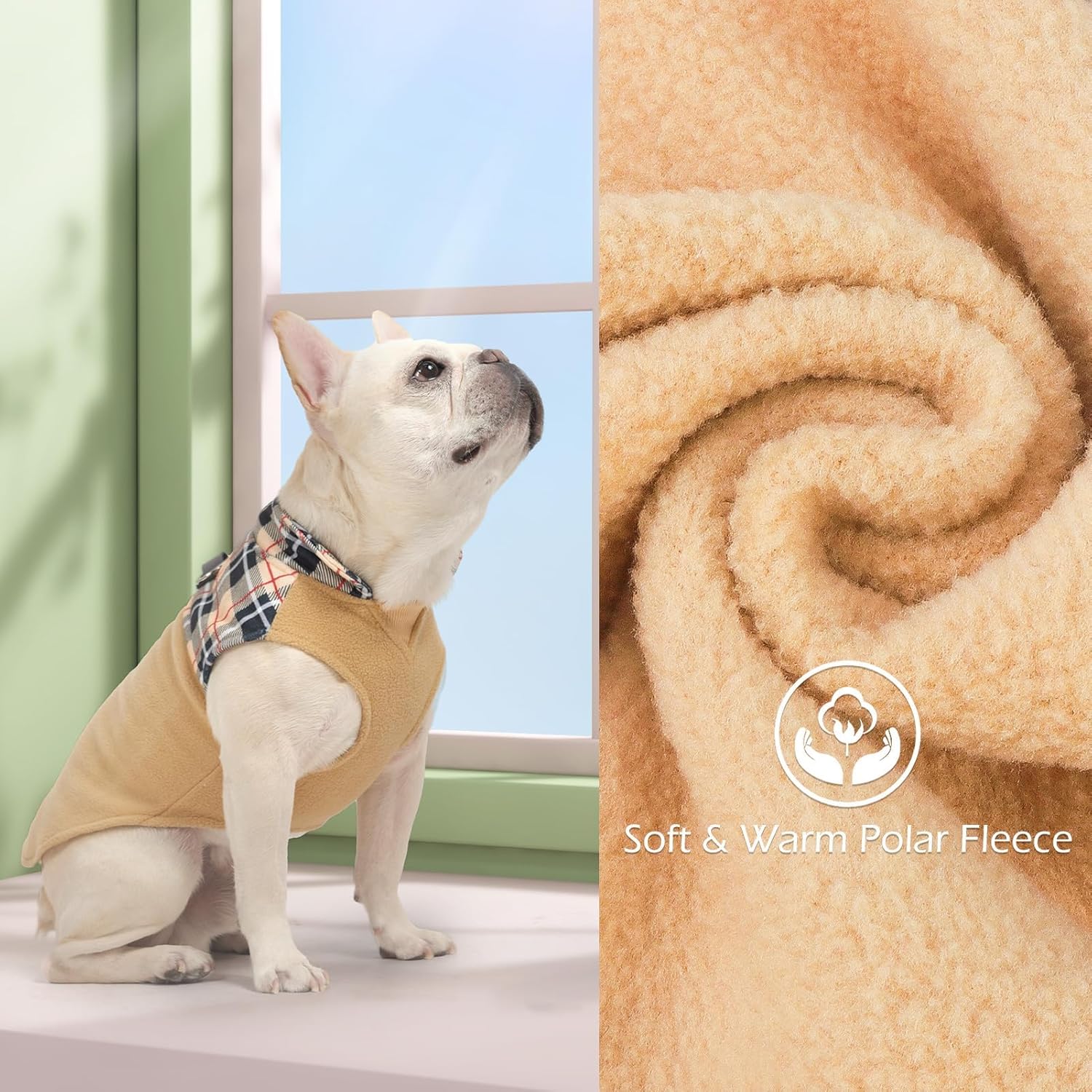 - [High-Quality Poly Fleece Material] This machine-washable fleece dog vest is designed for easy care, so you don’t have to worry about cleaning. Made from thick, high-density fleece fabric, it provides excellent insulation, keeping your dog warm and dry even in wet or snowy weather. The soft fleece also traps heat, ensuring your pup stays cozy throughout the winter.
