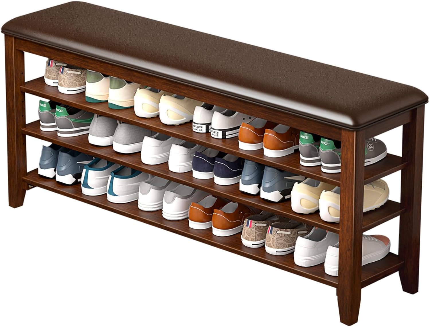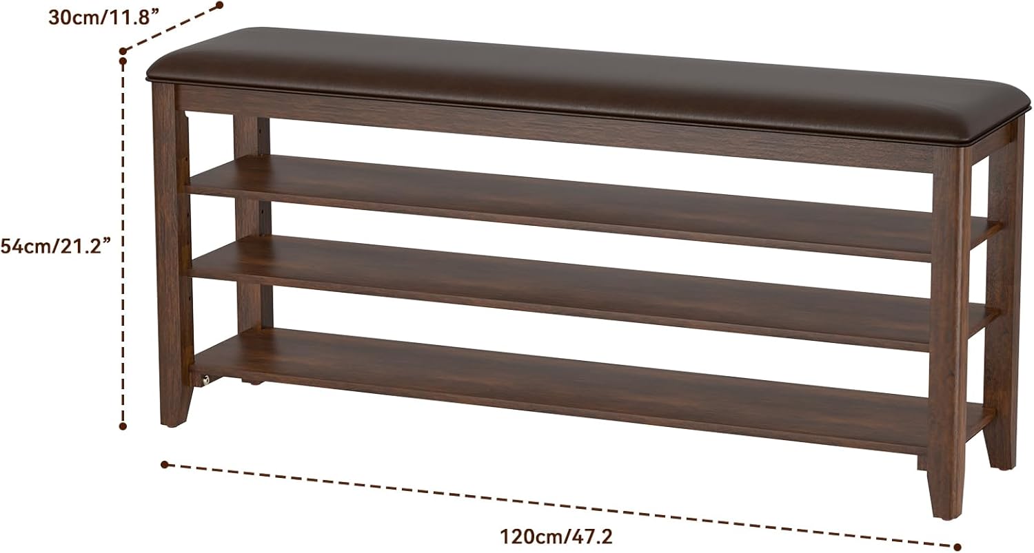 Shoe Bench Storage Rubberwood with Leather Cushion for Entryway Bench Ideal for Hallways Shoe Rack Front Doors Entrances Mudrooms Featuring 3 Height-Adjustable and Removable Shelves