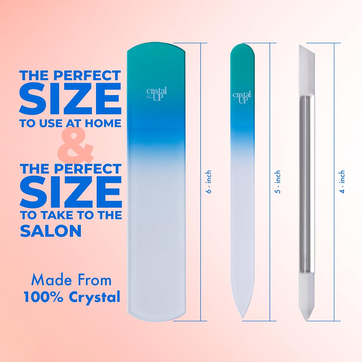 - VERSATILE MEDIUM HAND FILE - The medium hand file (5 in high x 0.4 in wide) is designed for shaping and smoothing your nails with precision. Its crystal surface seals the nail layers, preventing splits and promoting stronger, healthier nails