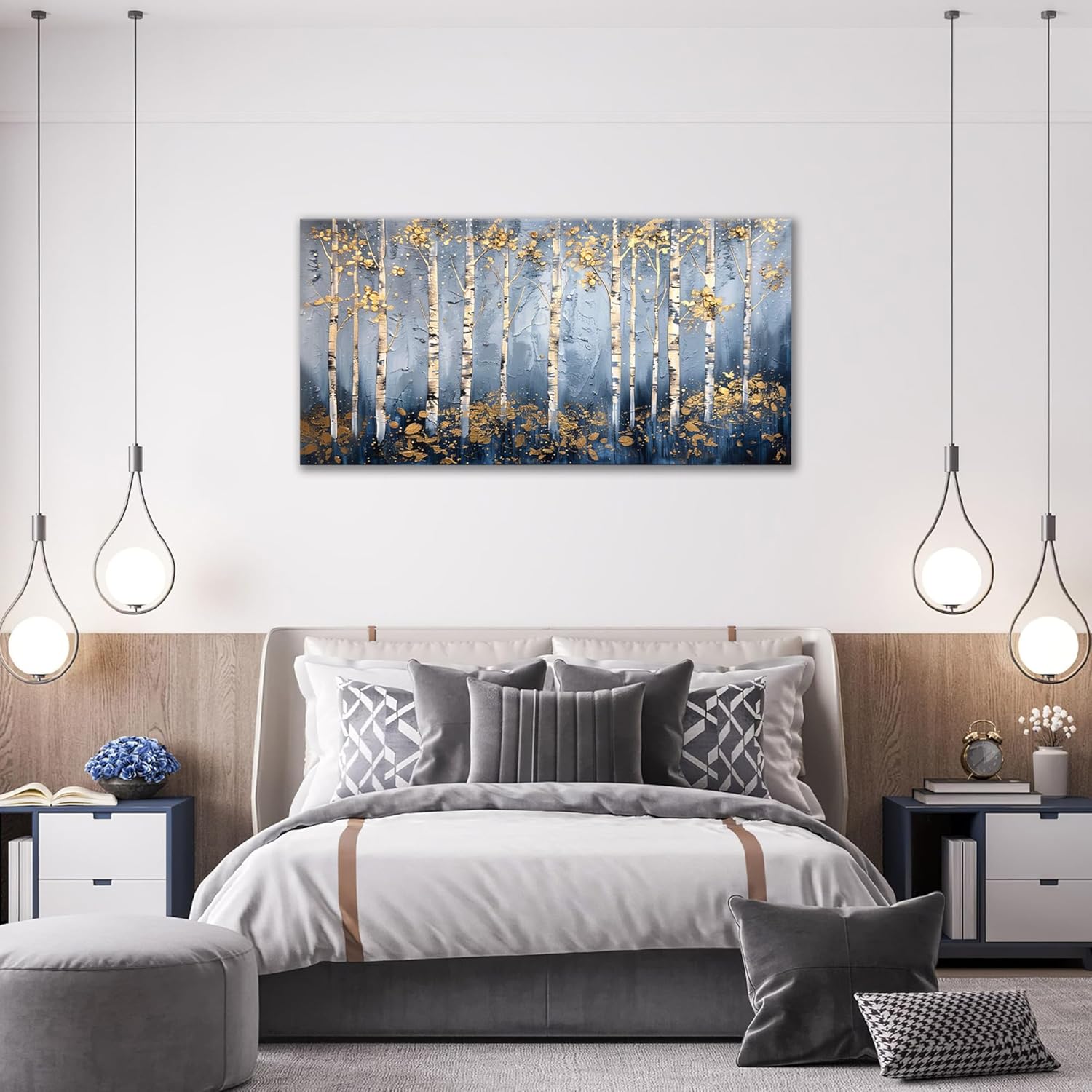 Large White Birch Wall Art Forest Golden Leaves Canvas Living Room Nature Landscape Pictures Framed Prints Oversize Wall Decor Painting Artwork for Bedroom Dining Home 60"x30"