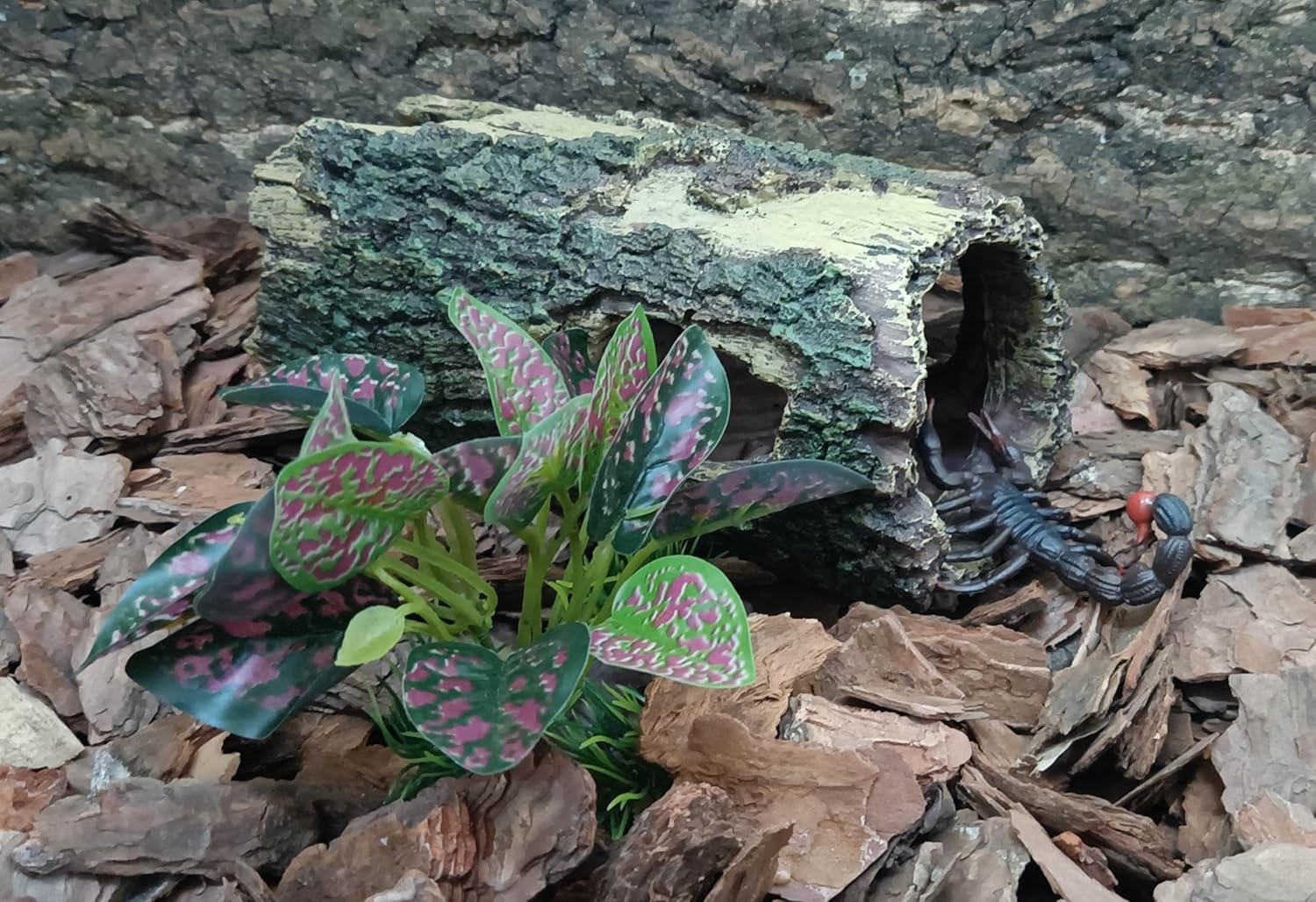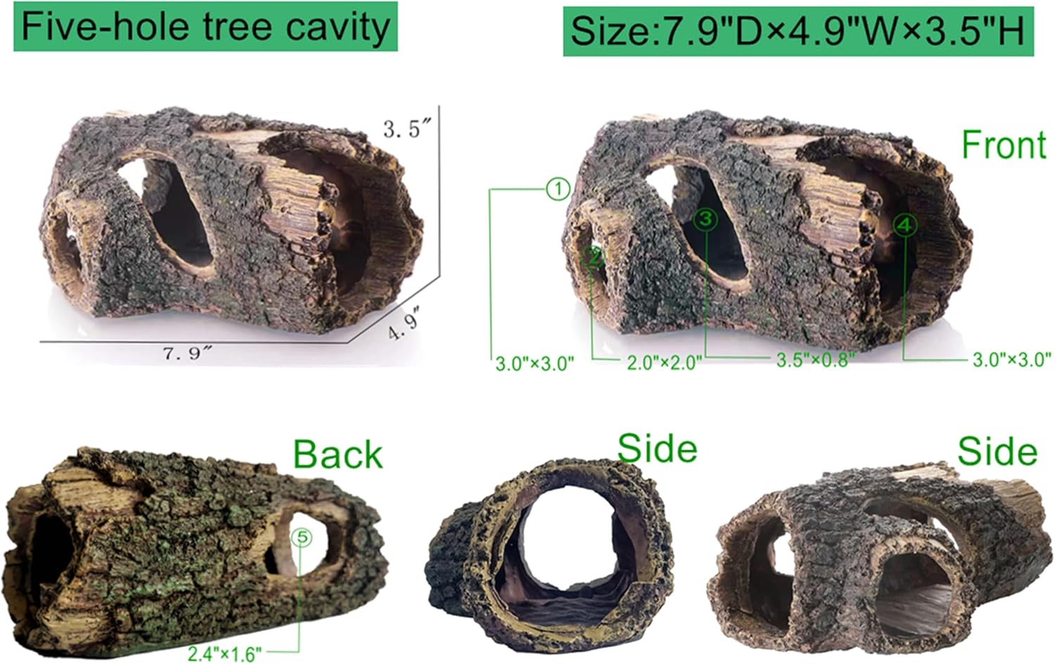 - 1.Easy Landscaping. Simulated resin bark texture reptile hides is your first choice for reptile tank accessories.The natural colors and realistic bark textures create an original ecological living environment for reptiles.Young ball pythons , corn snakes and hamsters can hide in it or move through it.It's a bit small for an adult ball python. It can also be used as fish tank accessories,the design of five holes makes it more enjoyable for small fish and shrimp to play.