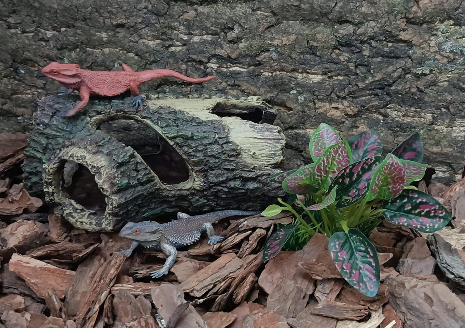 - 2.It’s essential to add a bearded dragon hide.Without a hiding cave,bearded dragons may experience significant psychological stress ,which can affect their appetite ,sleep and health.When they are not climbing for sunbathing or exercise ,the excellent bark texture caves are easier for climbing pets to hide ,and are less likely to be discovered.Making pet more confident ,better rested.Boost immunity and enjoy better health.