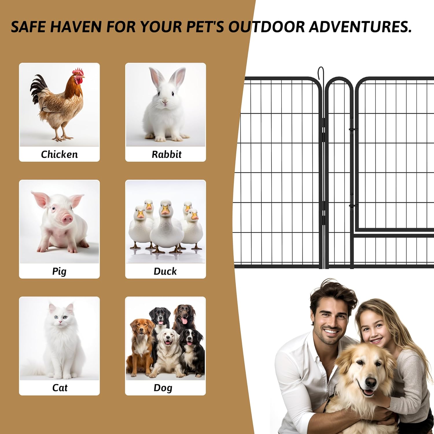 Dog Playpen, Outdoor Dog Fence, 8 Panels, 40" H Dog Pen for Large/Medium/Small Dogs, Heavy Duty Metal Pet Fence with Gate, Portable Dog Fence for RV Camping and Yard (Black)