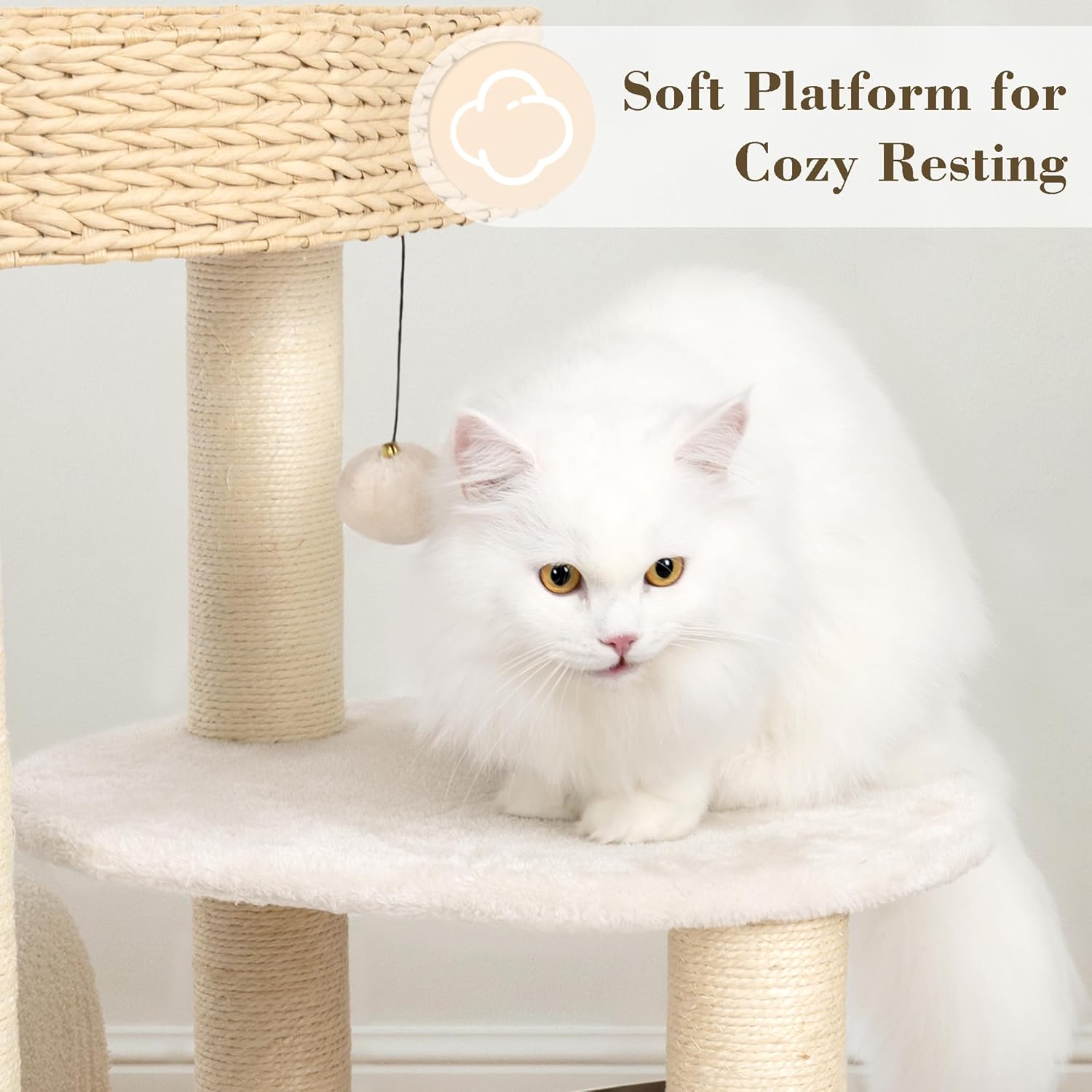 - ๐ High Quality Materials: Hand-woven condo & top perch with cushion is comfortable, breathable and cool. The plush platform provides a comfortable place for cats to relax or play. A great Chrismas gift for your lovely cat.