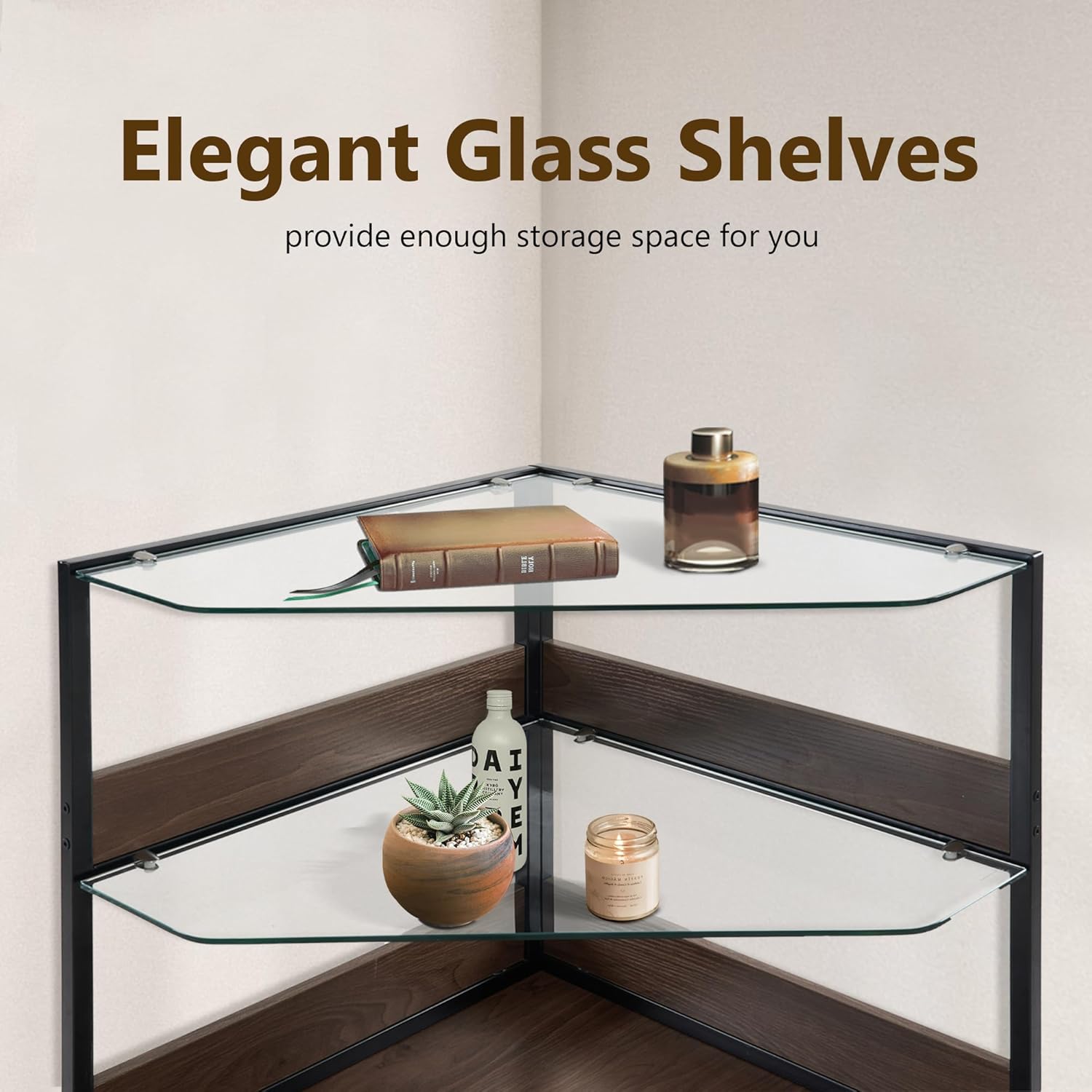 MCombo Small Corner Dog Crate Furniture with Glass Shelves, Wooden Dog Kennel Furniture with Door, Pet Crate Indoor Use, CN17 (Brown)