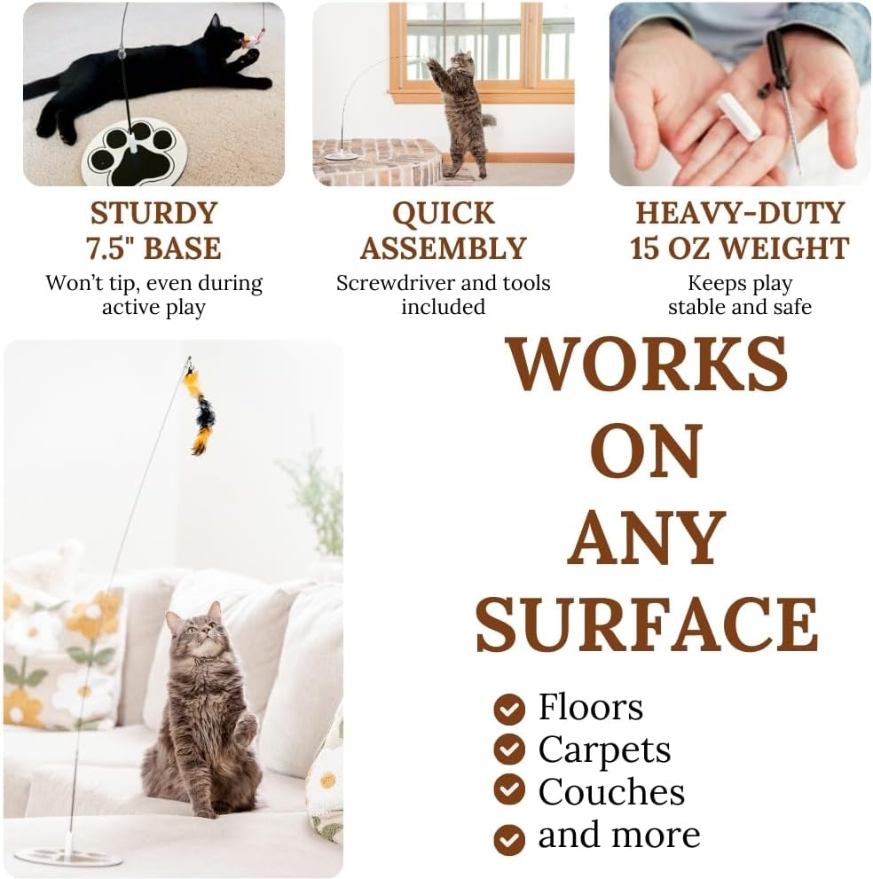 - This round base cat toy is designed for both self-play and interactive sessions. Whether your cat loves to chase feathers or hunt down a dangling worm, cat stimulation toys for indoor cats, kitten chew toys adult cat toyscat wand attachment toys feather
