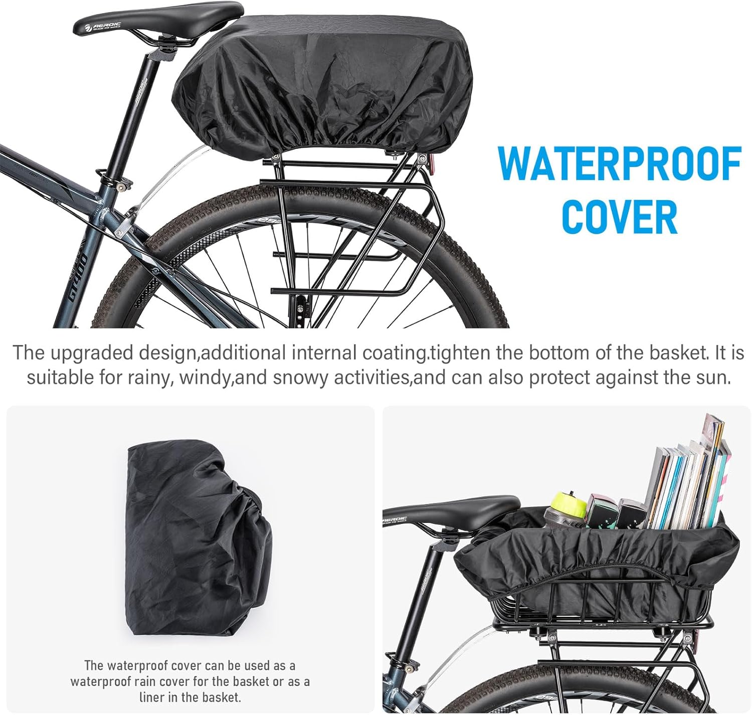 - 【Easy to Install】: The rear bike basket clamps to a standard rear rack, attaching and removing the cargo carrier from your bike is a breeze, allowing you to switch between carrying cargo and regular riding effortlessly. Our bike basket come with a waterproof cover, a cargo net, and ample installation accessories.