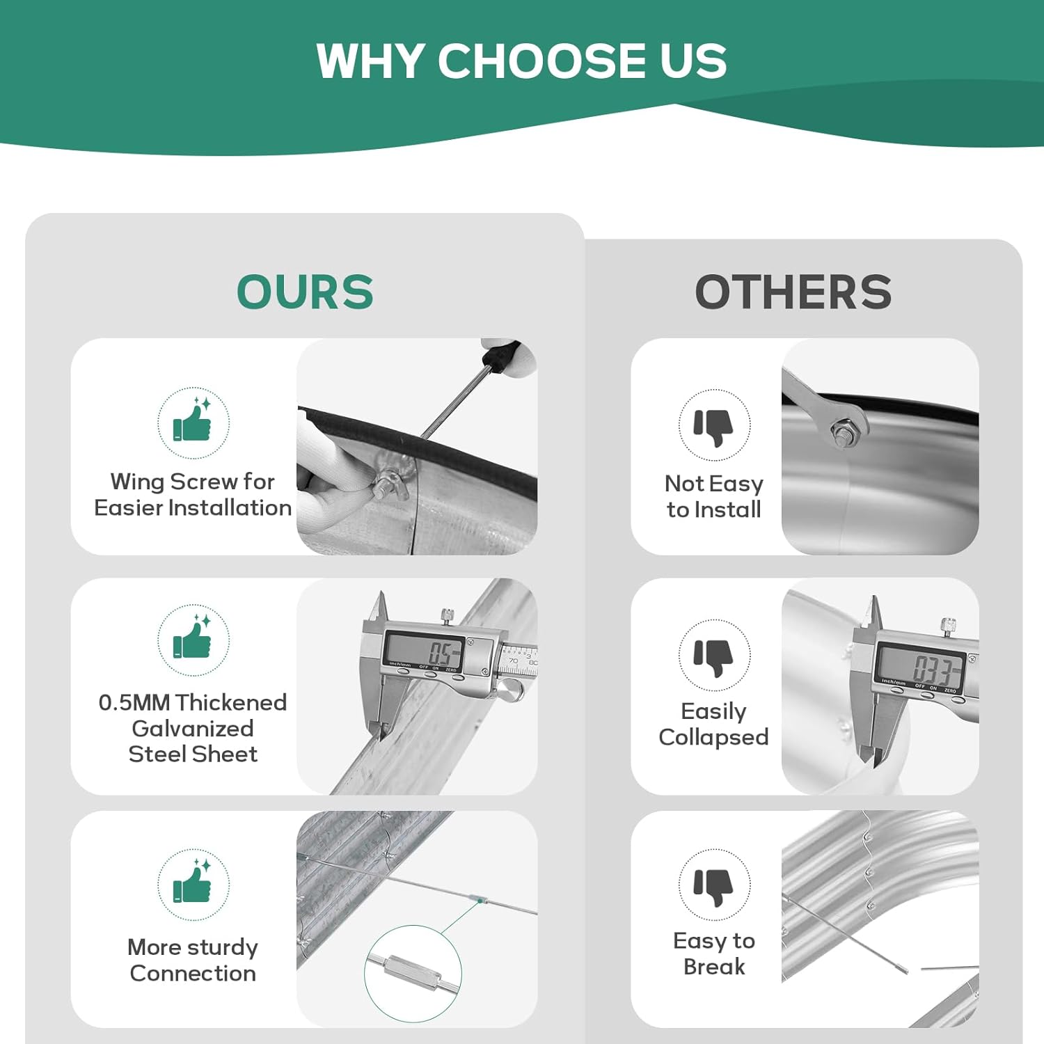 - 【 Easy Assembly 】Our metal raised garden bed is simple and easy to install. According to the detailed instructions and installation tools we provide, you can easily assemble your garden box and start planting with just a few simple steps and little time.