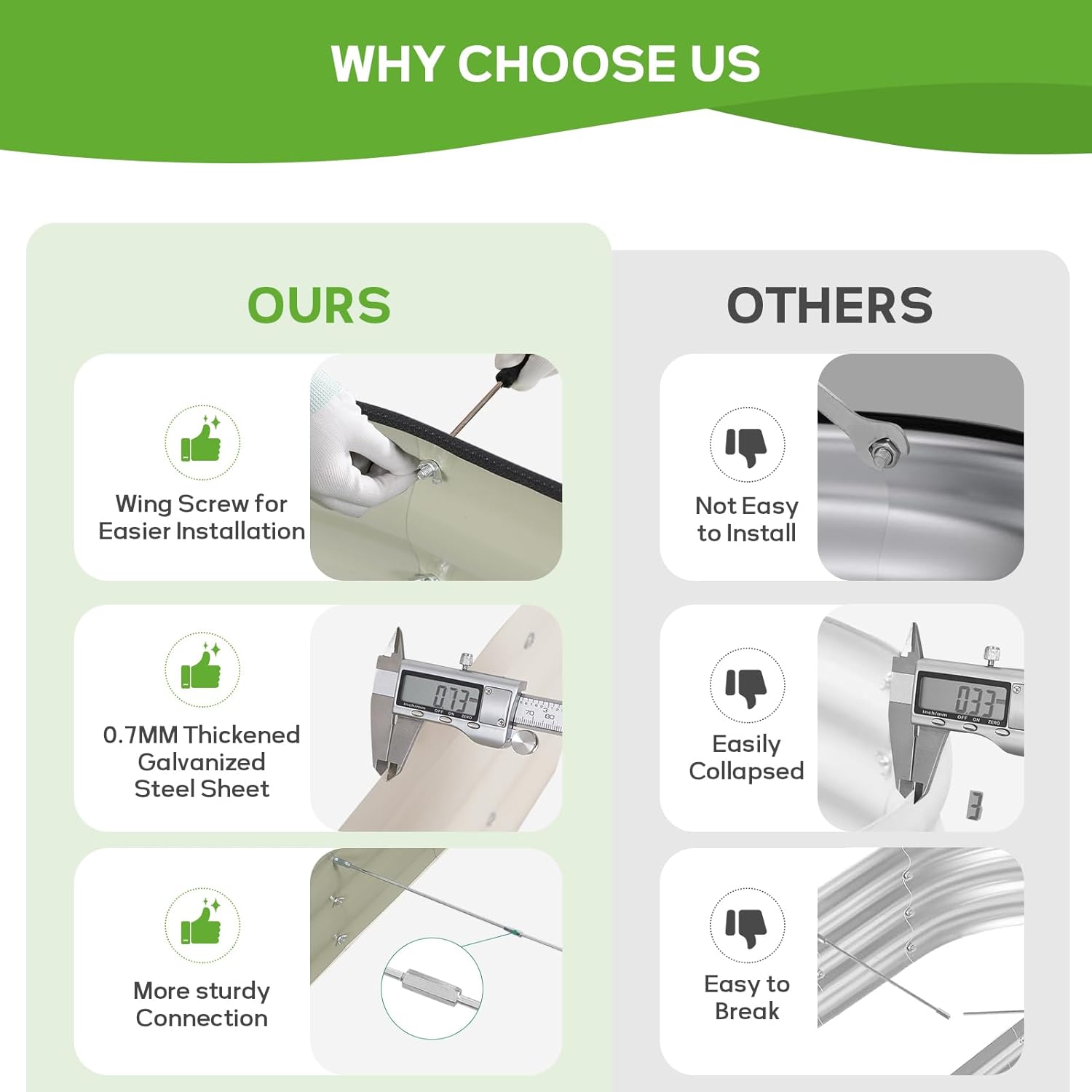 - 【 Easy Assembly 】Our metal raised garden bed is simple and easy to install. According to the detailed instructions and installation tools we provide, you can easily assemble your garden box and start planting with just a few simple steps and little time.