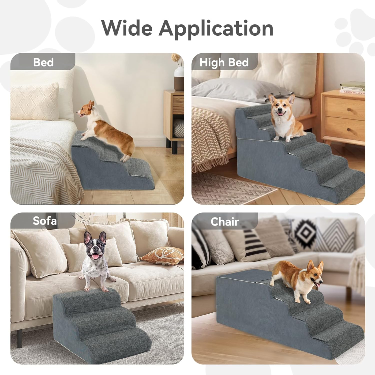 - Premium Carpet for Paws and Play: Our dog ramp is covered by 370g carpet fabric on each slope,which is not only durable but also adds extra traction for your petโs paws, preventing slips during their climb. Paired with high-density 25D memory foam that maintains its shape with a 98%+ rebound rate, these steps are a luxurious haven for your furry friend