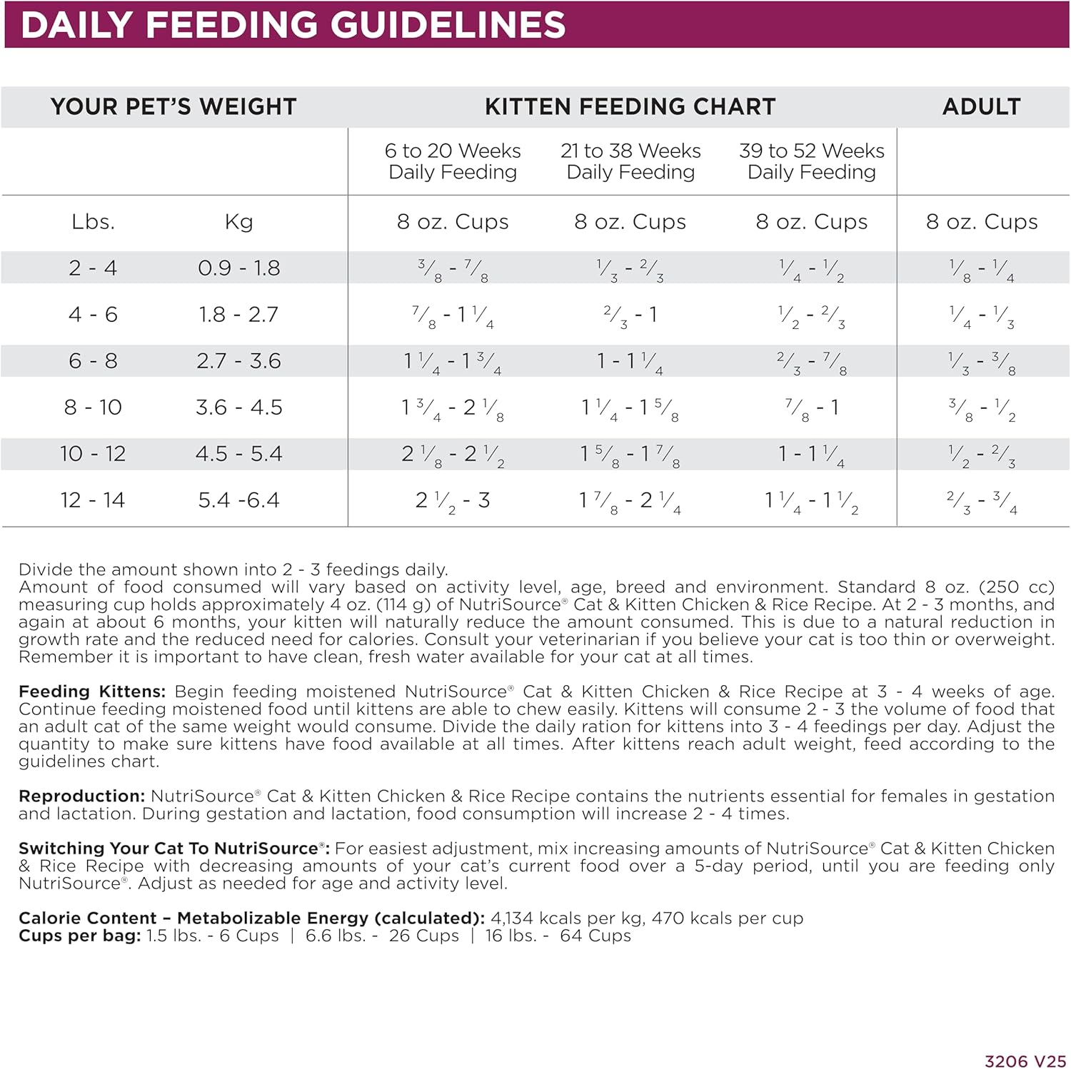- As a member of our grain inclusive series of cat foods, NutriSource Cat & Kitten Chicken & Rice Recipe is formulated to meet AAFCO guidelines for all life stages