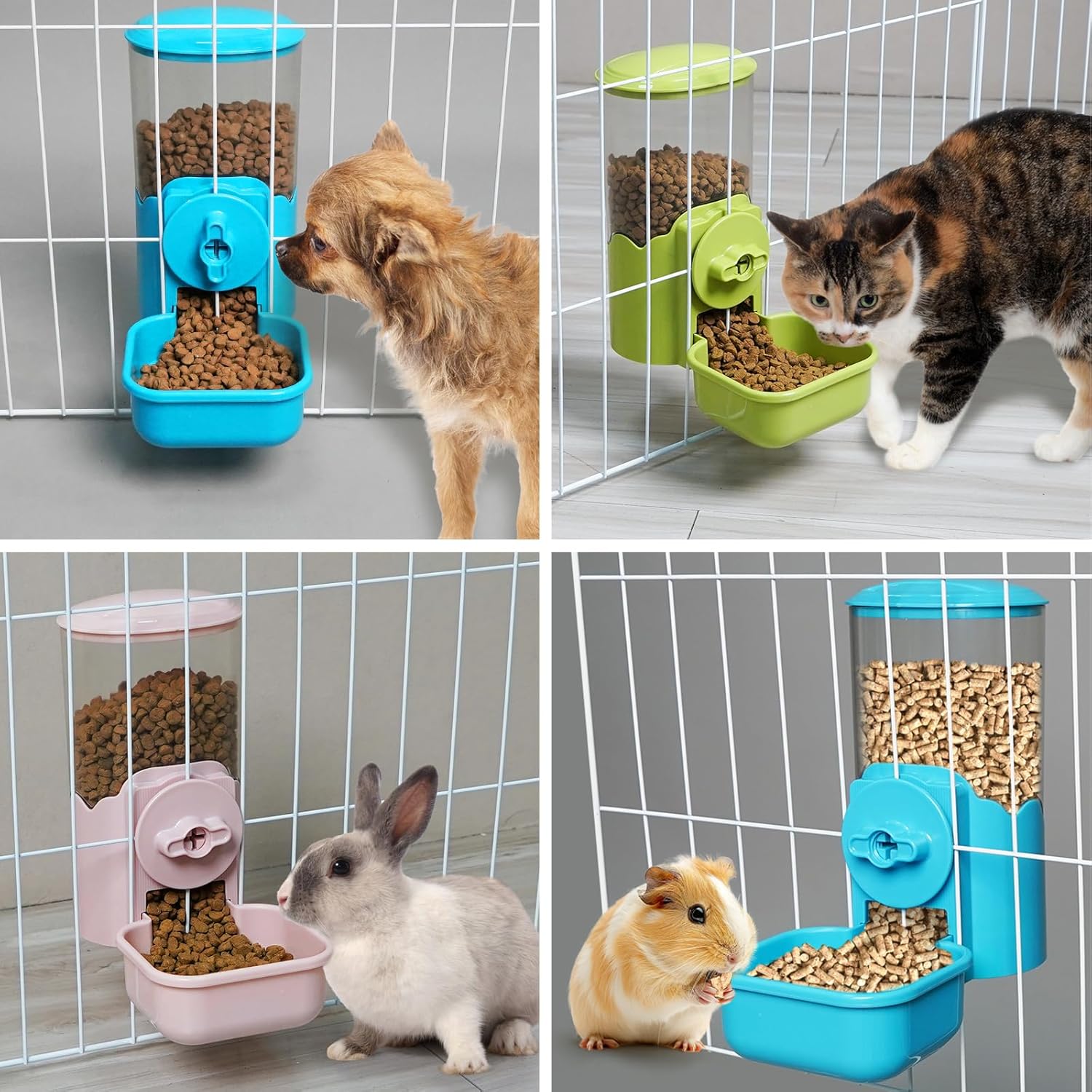 VANNON Small Animal Hanging Automatic Food Dispenser, 35oz Gravity Pet Feeder for Cage, Food Bowl for Rabbit Puppy Cat Ferret Guinea Pig Chinchilla Parrot (Pink)