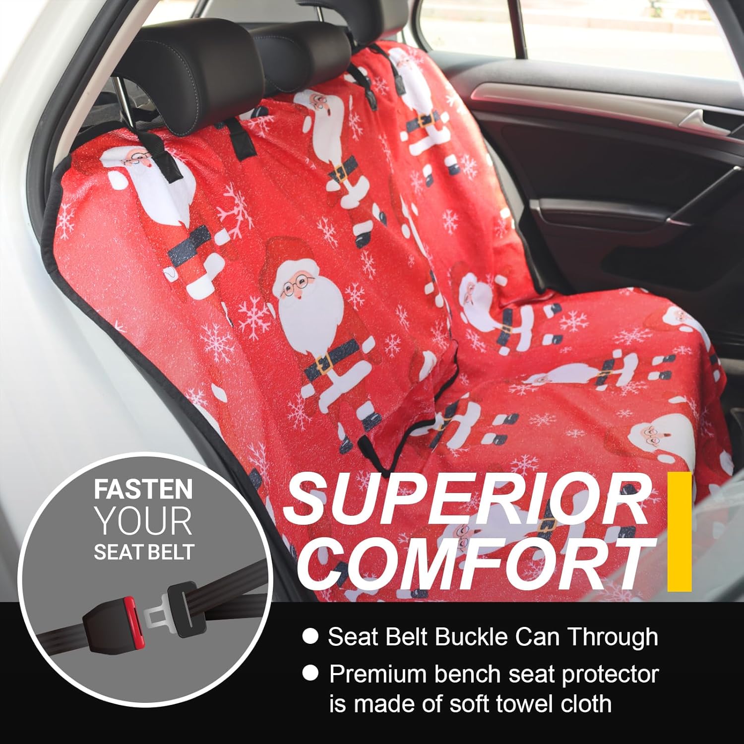 Back Seat Cover for Car Trucks Van SUV,Waterproof Rear Bench Towel Seat Covers for Dogs and Kids,Automotive Backseat Protector (Santa Claus)