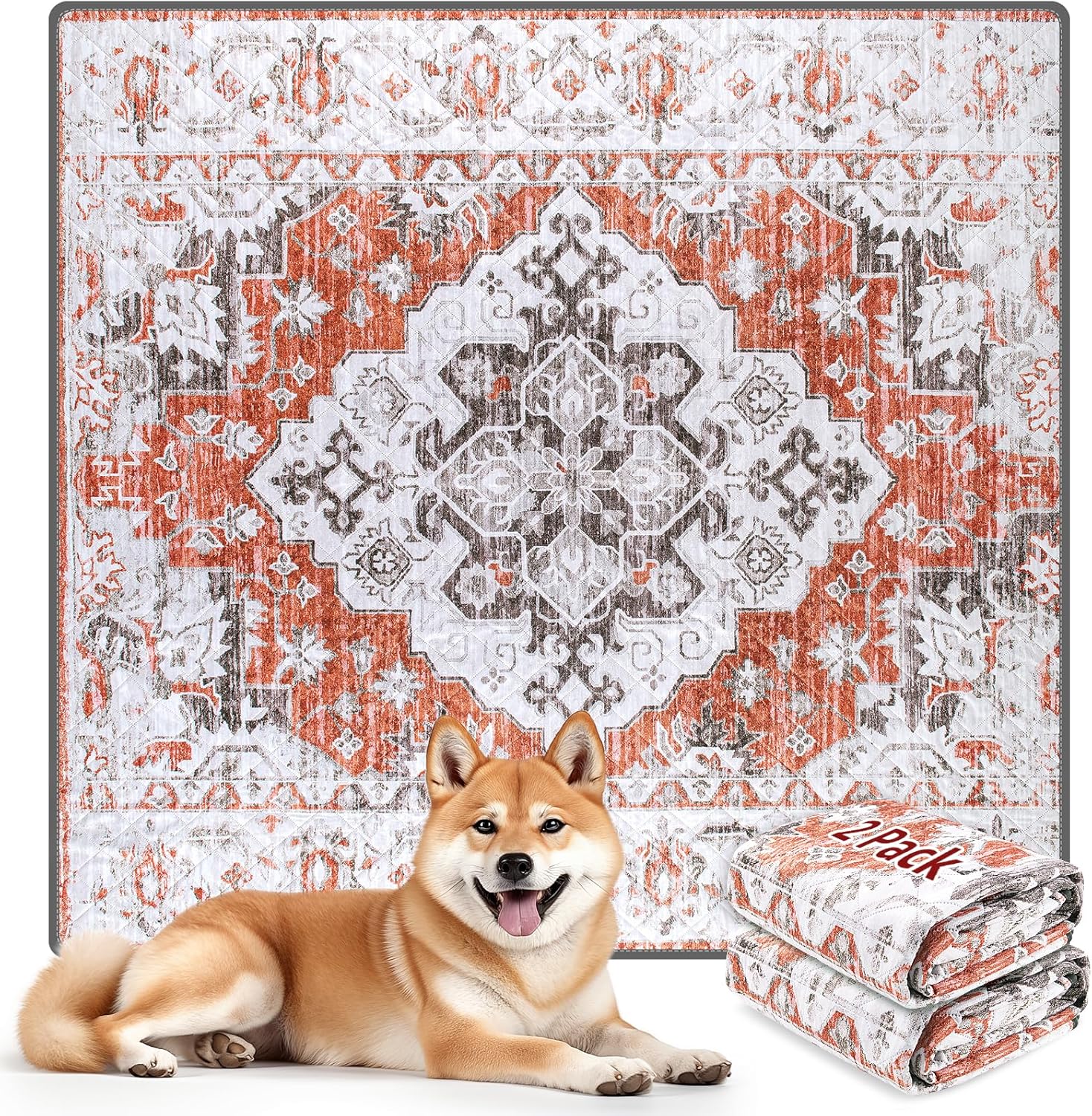 LOOBANI Reusable Pee Pads for Dogs, 2 Pack Super Absorbent Washable Puppy Pee Pads, Waterproof Non-Slip Whelping Pad for Floor Playpen Crate Couch-31 x36 (Red-Orange)