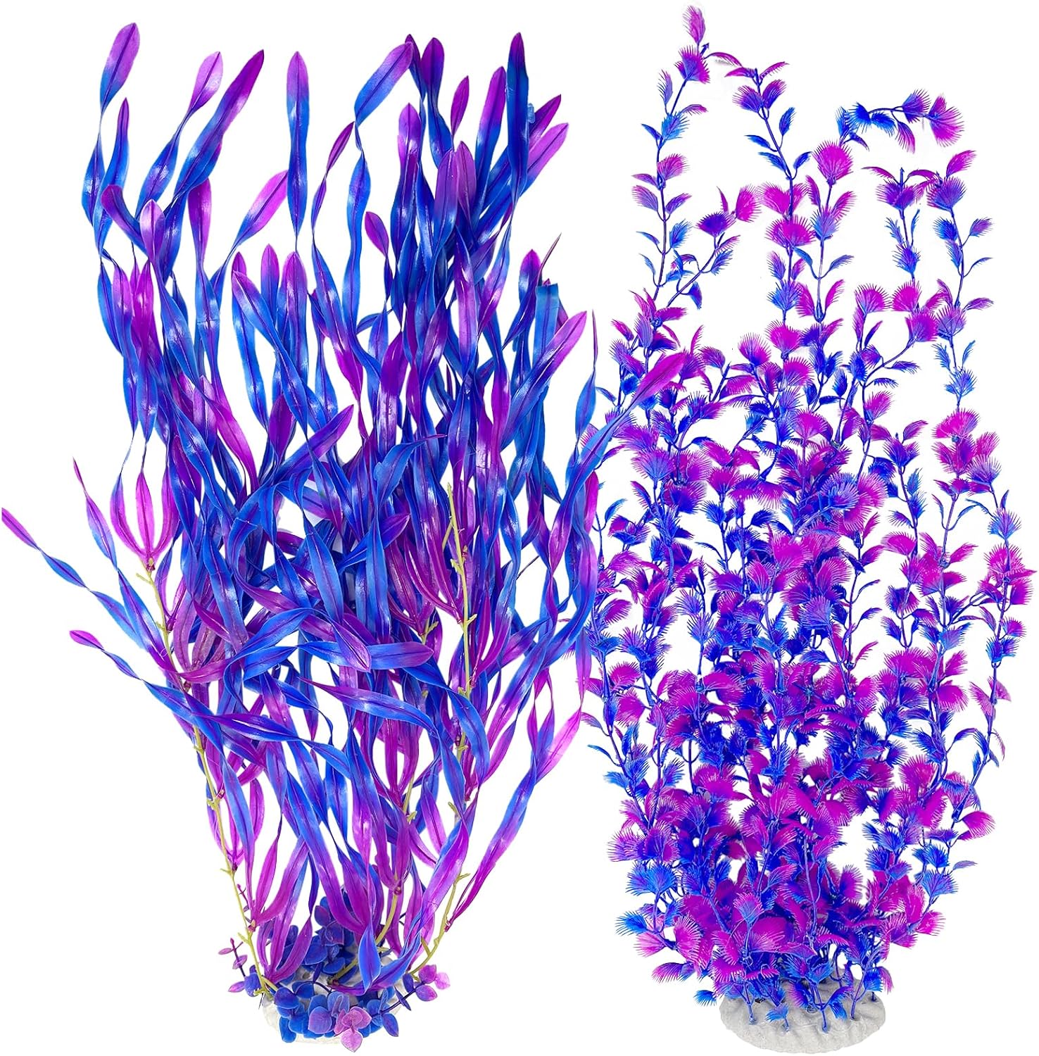 Hamiledyi Tall Aquarium Plants 23 Inches - Fish Tank Decorations, Artificial Green Water Plants Grass Cluster, Soft Plastic Fake Decor 2PCS(Purple Style C)