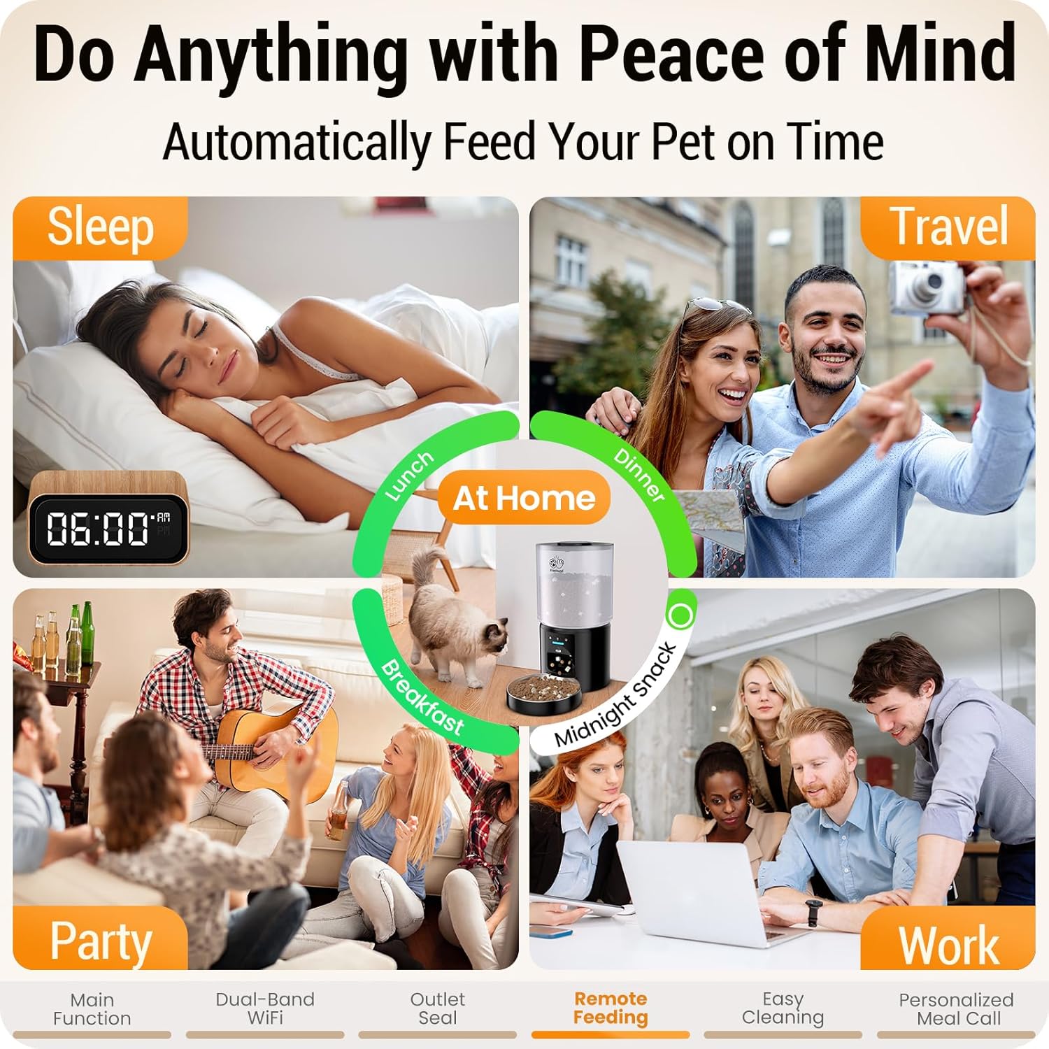 - Dual-band WiFi : The automatic cat feeder with app supports dual-band WiFi (2.4GHz & 5GHz). Dual-band wifi means you don't have to modify your router for channel compatibility issues. Faster 5G networks allow for a more stable signal.