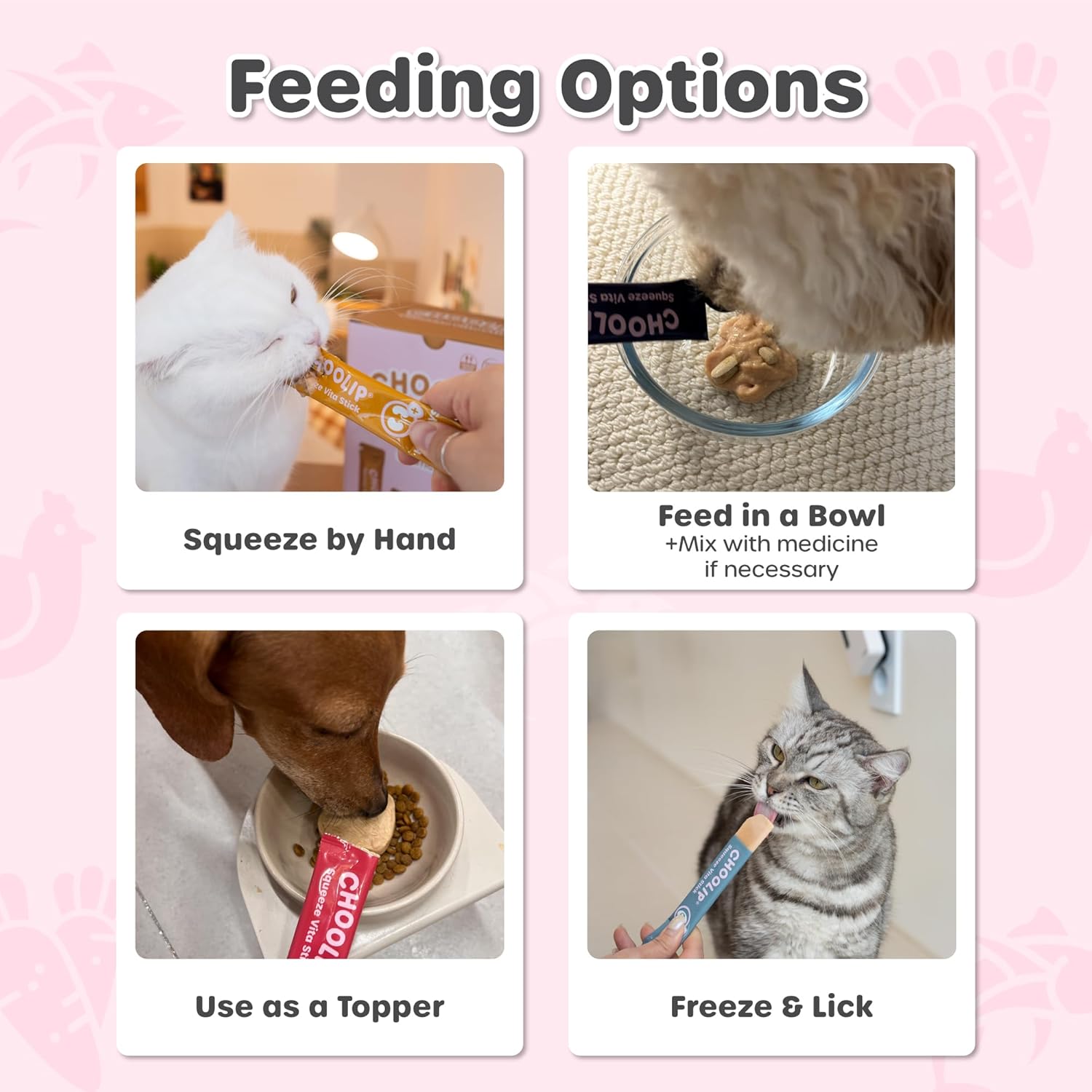 - TREATS FOR CATS AND DOGS: Why not smear their favorite lick mat in our nutrient dense paste? Dogs love it! And, our high protein, low calorie, multivitamin dog treats and cat treats have 9% crude protein and 83% moisture per serving. A wet cat food and dog food supplement, 1-3x a day
