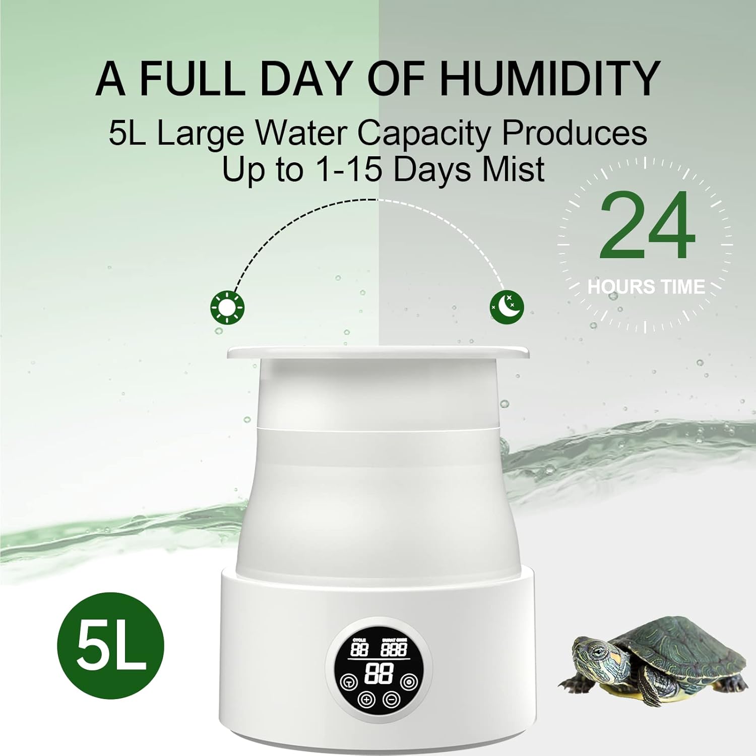 5L Foldable Automatic Reptile Mister with Timer, Fogger System with 360Adjustable Nozzles, Humidifier for Lizard, Snake, Amphibian, Frog, Plants, Terrarium