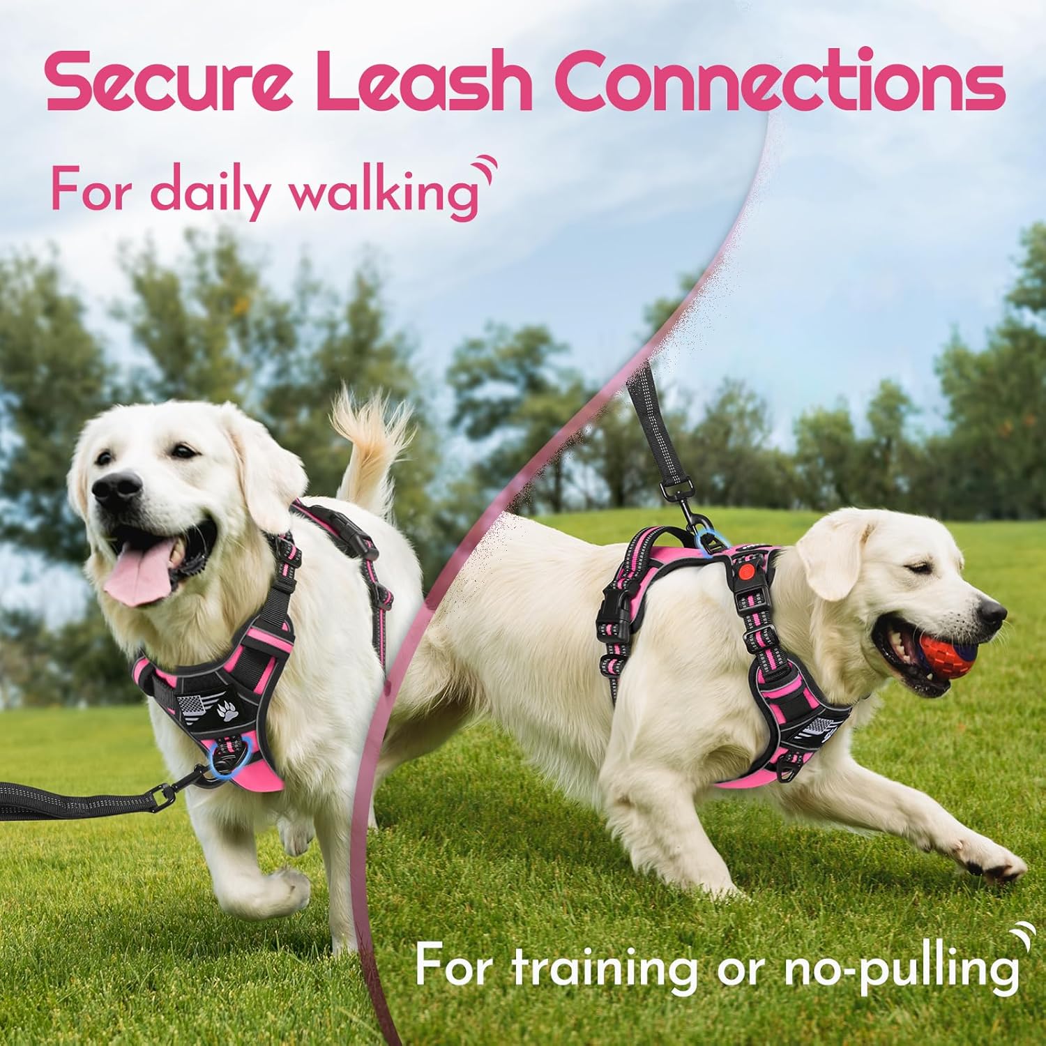 - Versatile Controls: The back ring is used for daily walking, which provides accompanying moments for both the dog and you. You can utilize the front ring to redirect your dog's forward motion, making easier to manage dogs that tend to pull and pomoting a better outting behavior. The back handle offers an extra grip for emergency stop or assistance help