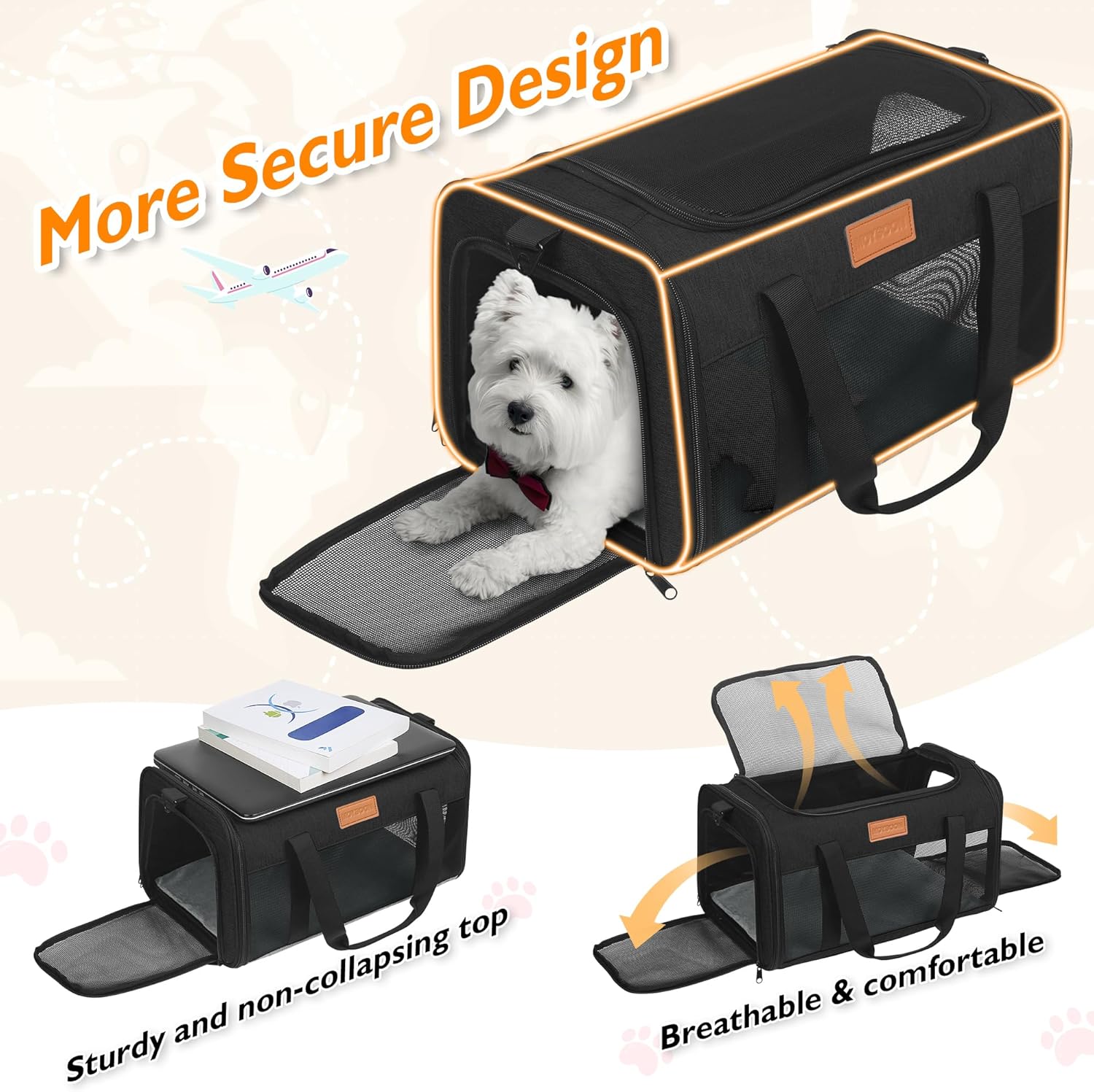 PETUX TSA Approved Pet Carrier in Cabin, 17"x11"x9.5" Soft Cat Carriers for Small Cat up to 12 lb and Puppy up to 10 lb, Top Open Portable Pet Carrier Airline Approved for Travel and Vet Visit (Black)