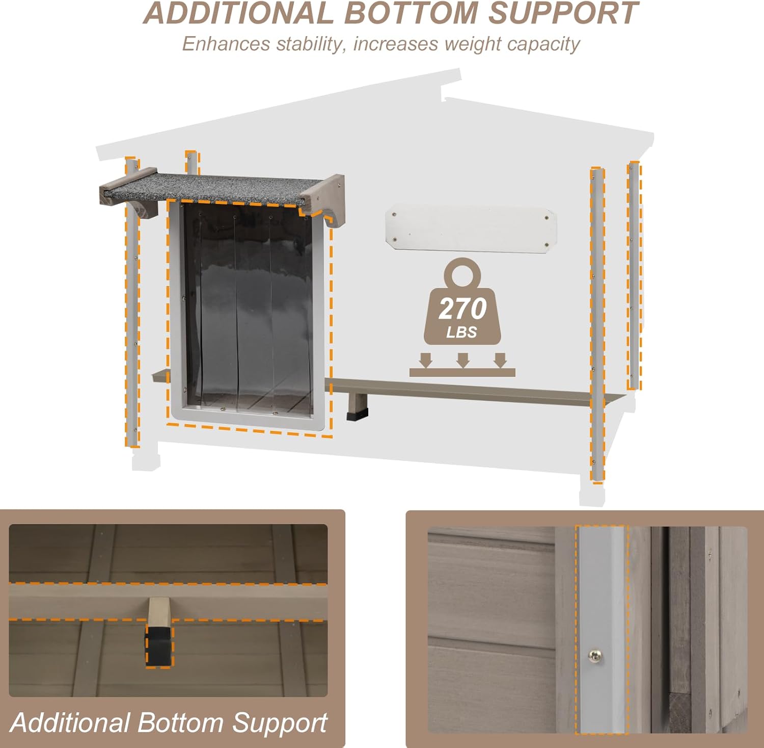 - 【EASY TO CLEAN】What Makes Our Dog House Unique? It features a removable floor for effortless internal cleaning. The asphalt roof offers excellent protection against rain and harsh weather, with a slanted design to quickly shed water and a roof overhang to minimize splashback. For added convenience, the roof opens easily, allowing convenient access to the interior for cleaning and maintenance.