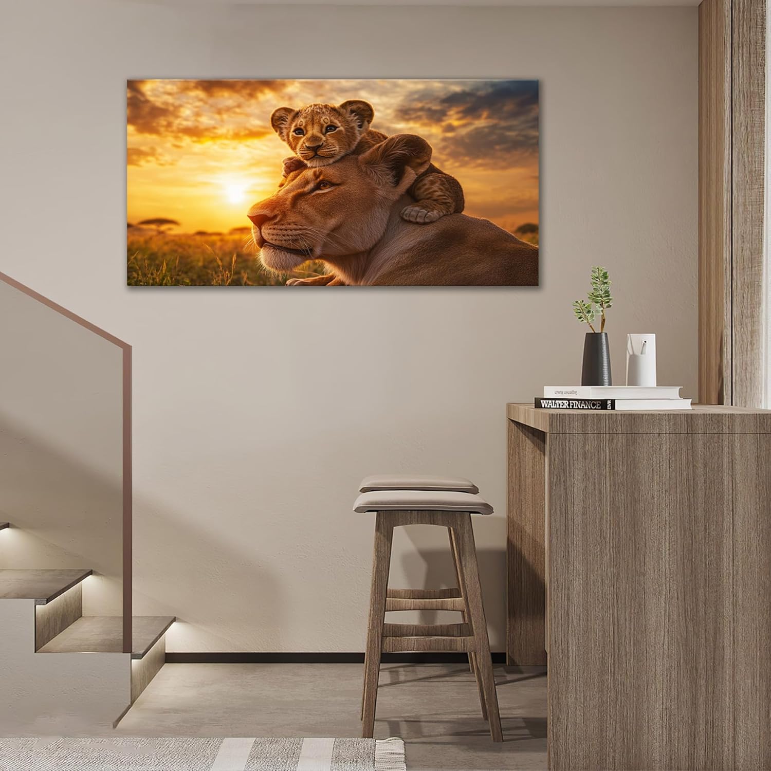 Large Lion Wall Art Lion and Lioness Canvas Living Room African Wildlife Animal Pictures Framed Prints Oversize Wall Decor Painting Artwork for Bedroom Dining Office Home 60"x30"