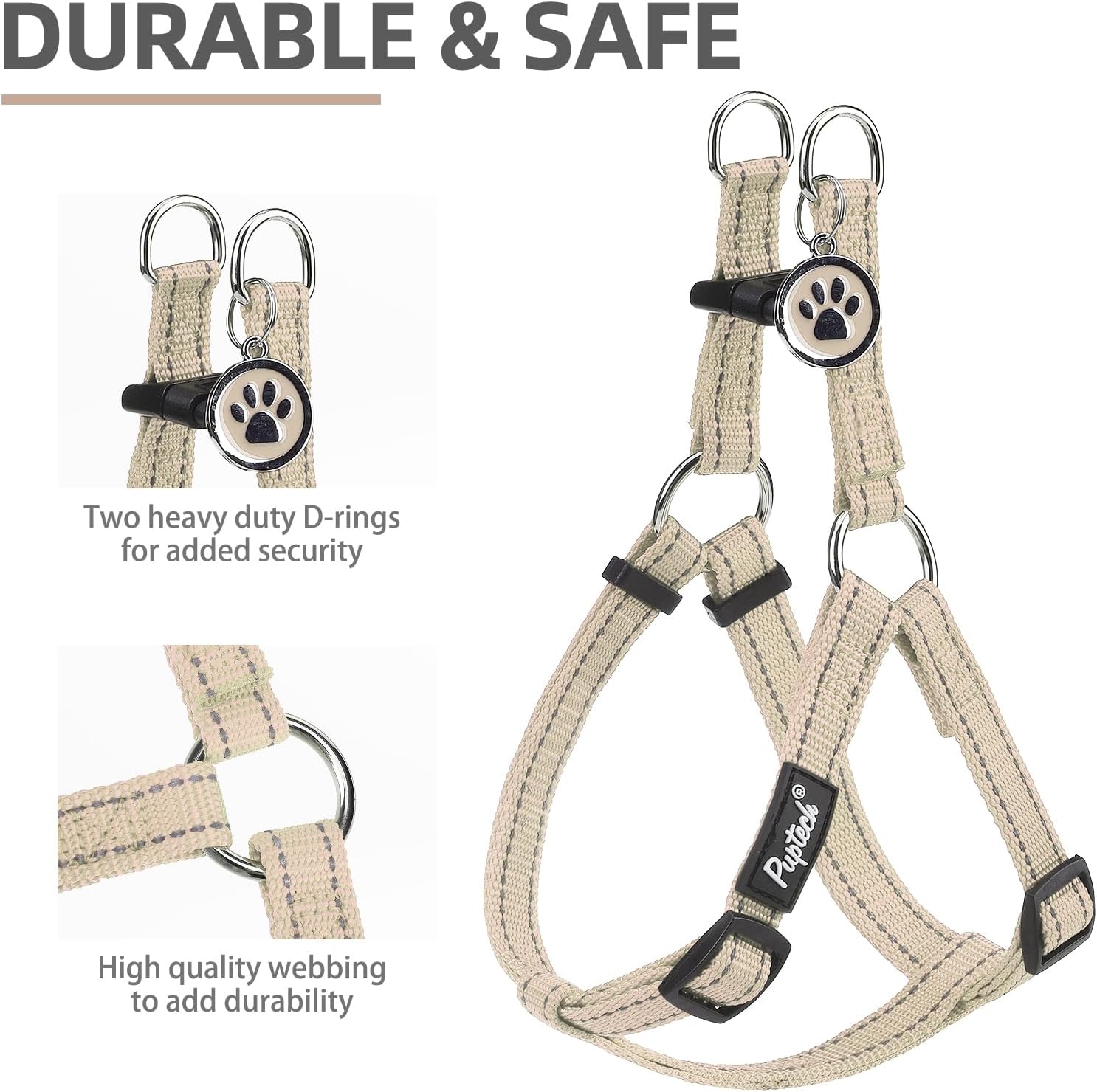 PUPTECK No Pull Dog Harness Soft Adjustable Basic Nylon Step in Puppy Vest Outdoor Walking with ID Tag, Reflecive Beige, S