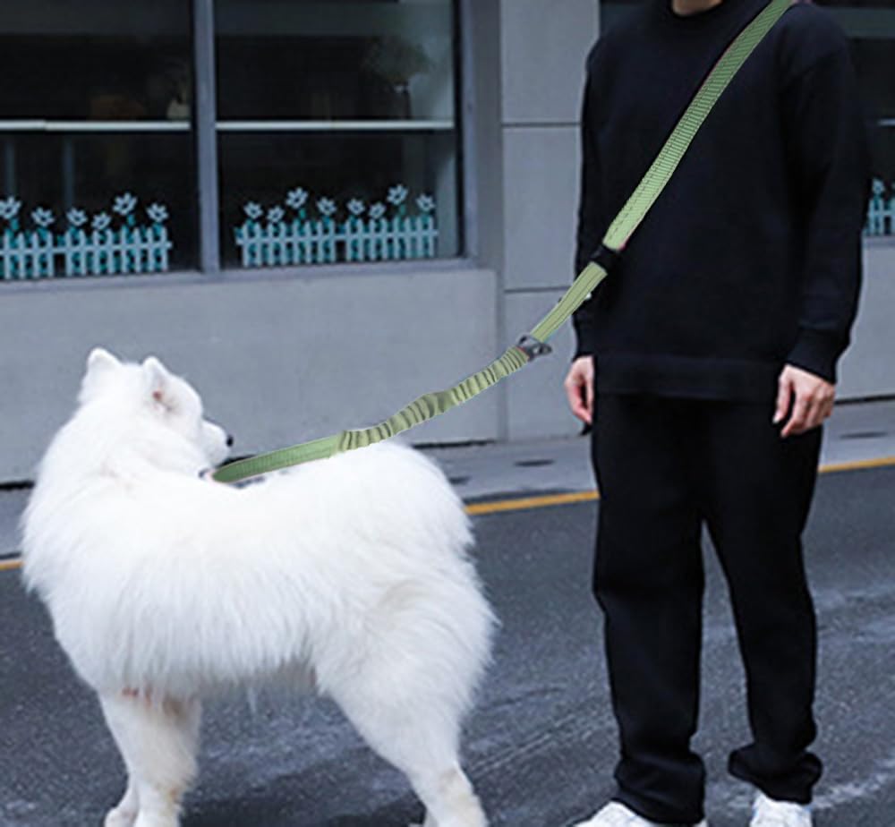 - Bungee Dog Leash: This heavy duty bungee dog leash is perfect for active dogs. Bungees design help to absorb shock from dogs, reduce back strain and the risk of getting hurt. Our waist leash is 57 inch and extends up to 90 inch, your dog can comfortably run in front of you. And the dog leashes for large dogs heavy duty with short handle, you can use it pull the dog back to safety fastly in case of emergency