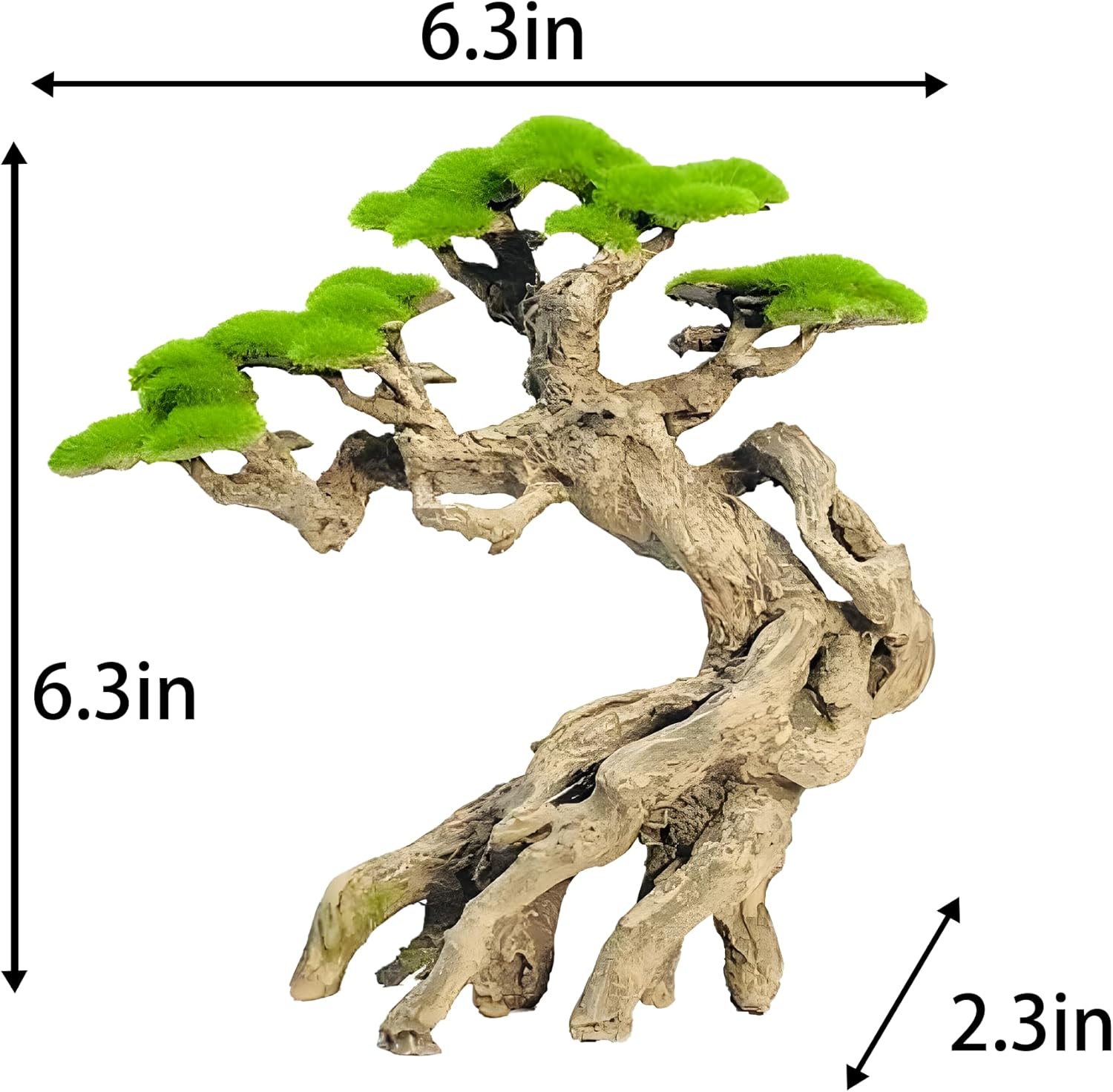 - Realistic Coloring- Looks like a real bonsai tree! This decoration is beige and gray colored with faux moss to make it look more natural and visually appealing in your tank. It’s a perfect Zen, calming accent to your room.