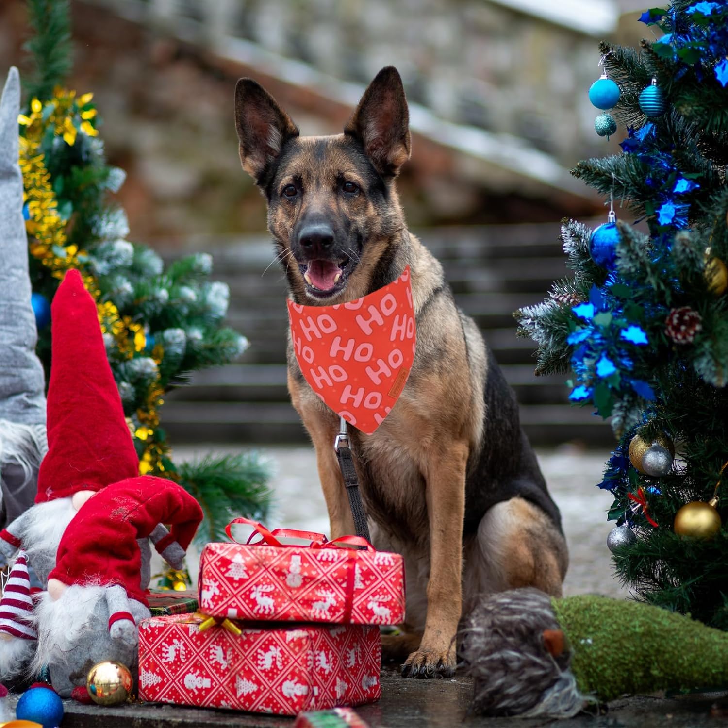 - Christmas Dog Bandanas: These christmas bandanas are designed with red and green color, classic xmas elemets such as santa, HOHO, snowflake, your pets will become stylish and attractive when wearing them during christmas holiday.