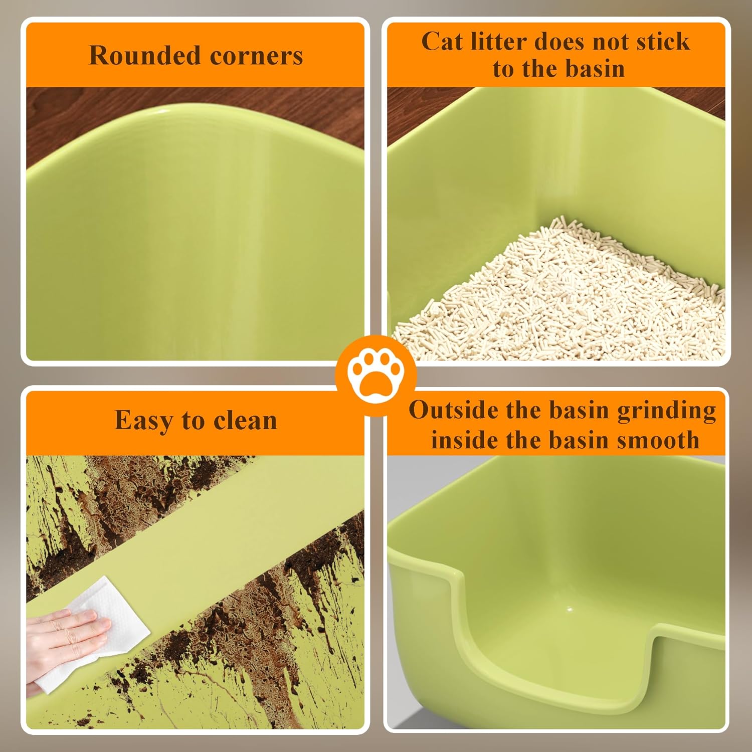 - 【High Sides Anti-Splashing 】This litter box has high sides to prevent litter from splashing and say goodbye to the headache caused by litter scattering, effectively containing litter and keeping your home clean and tidy.